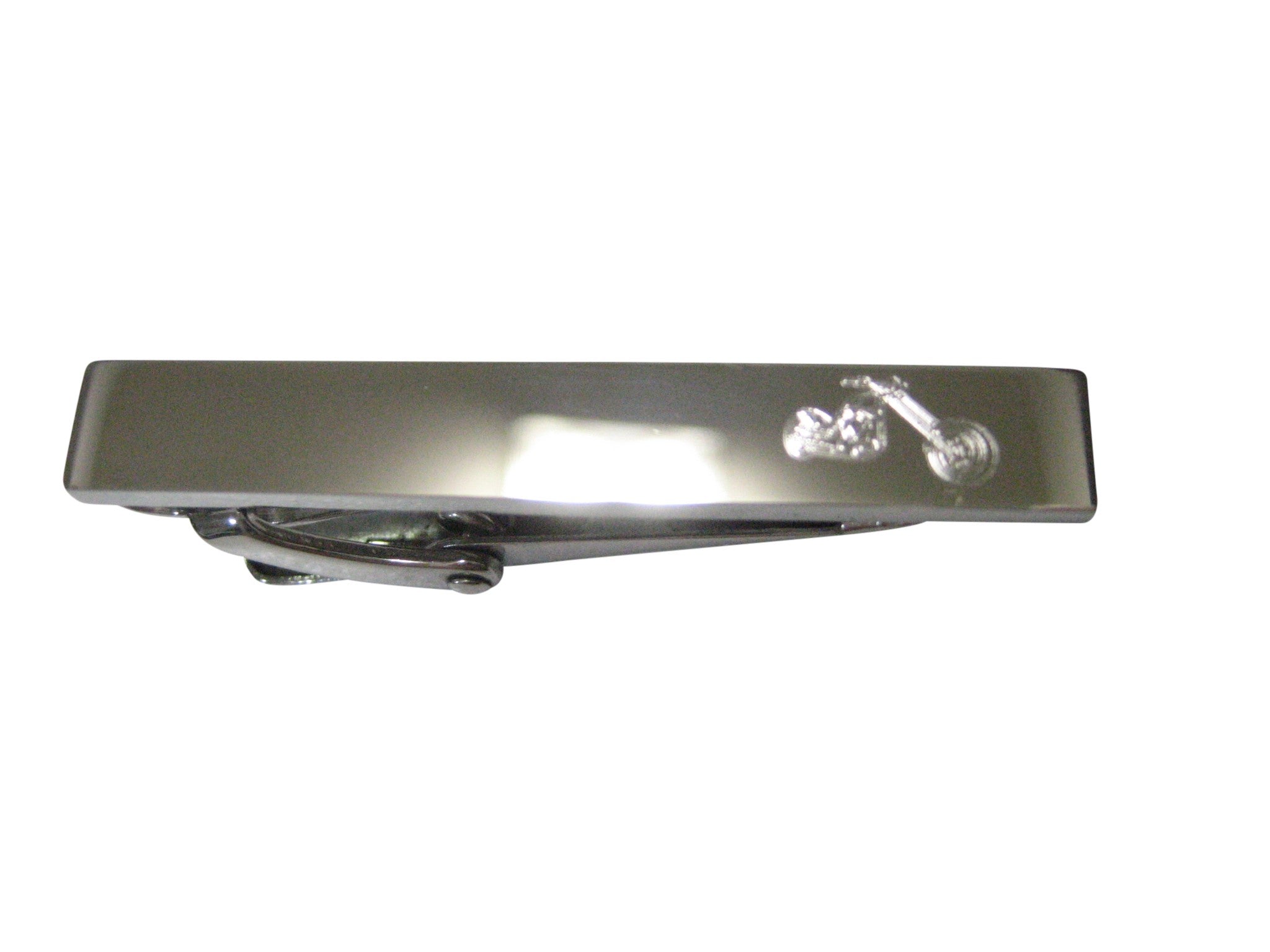 Silver Toned Etched Sleek Chopper Motorcycle Skinny Tie Clip