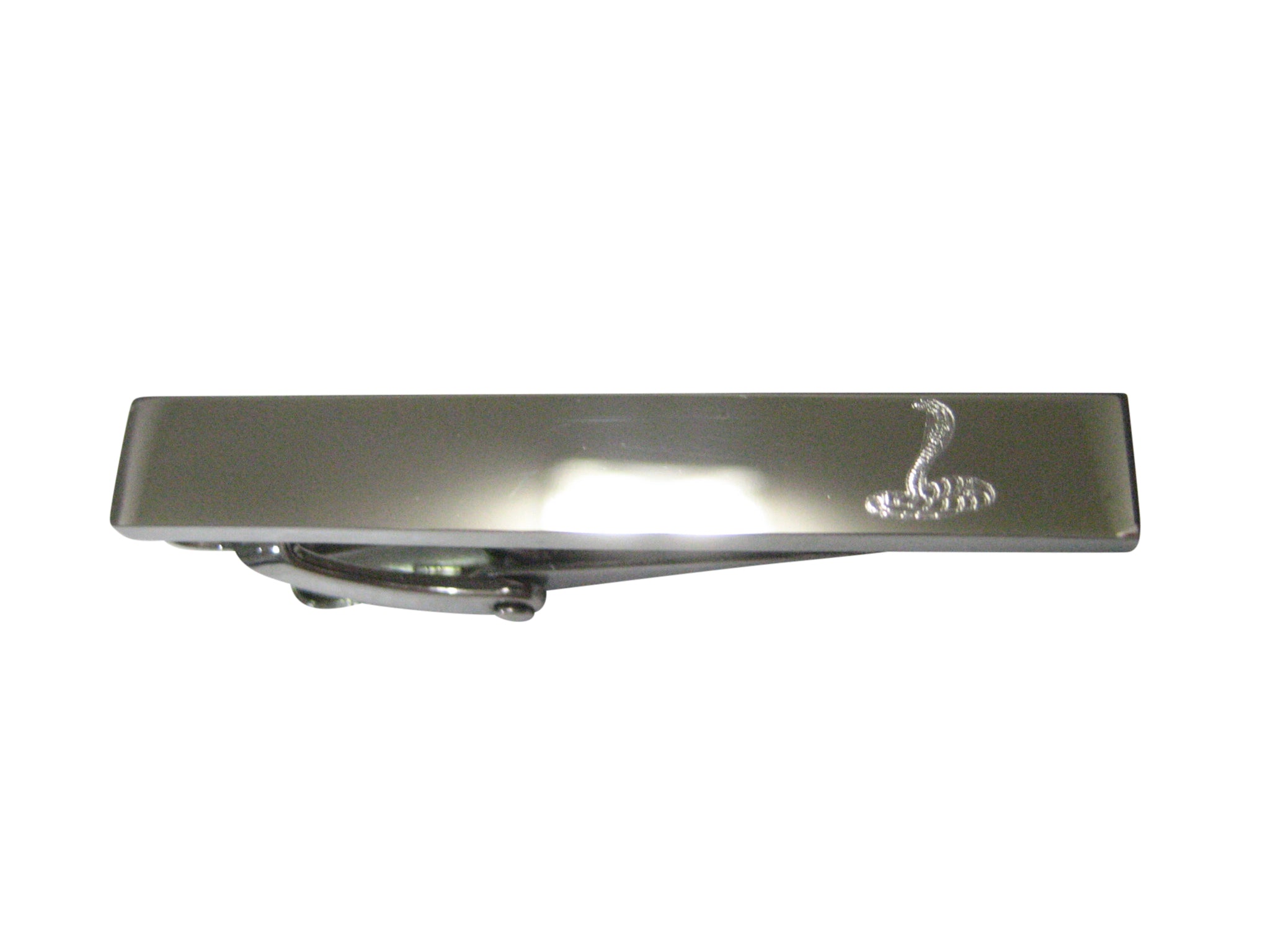 Silver Toned Etched Sleek Cobra Snake Skinny Tie Clip
