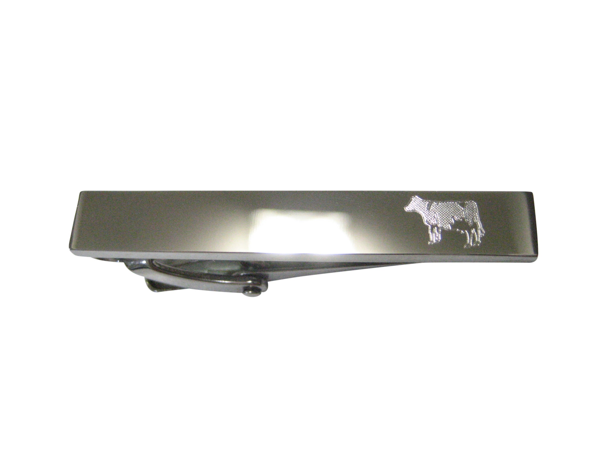 Silver Toned Etched Sleek Cow Skinny Tie Clip