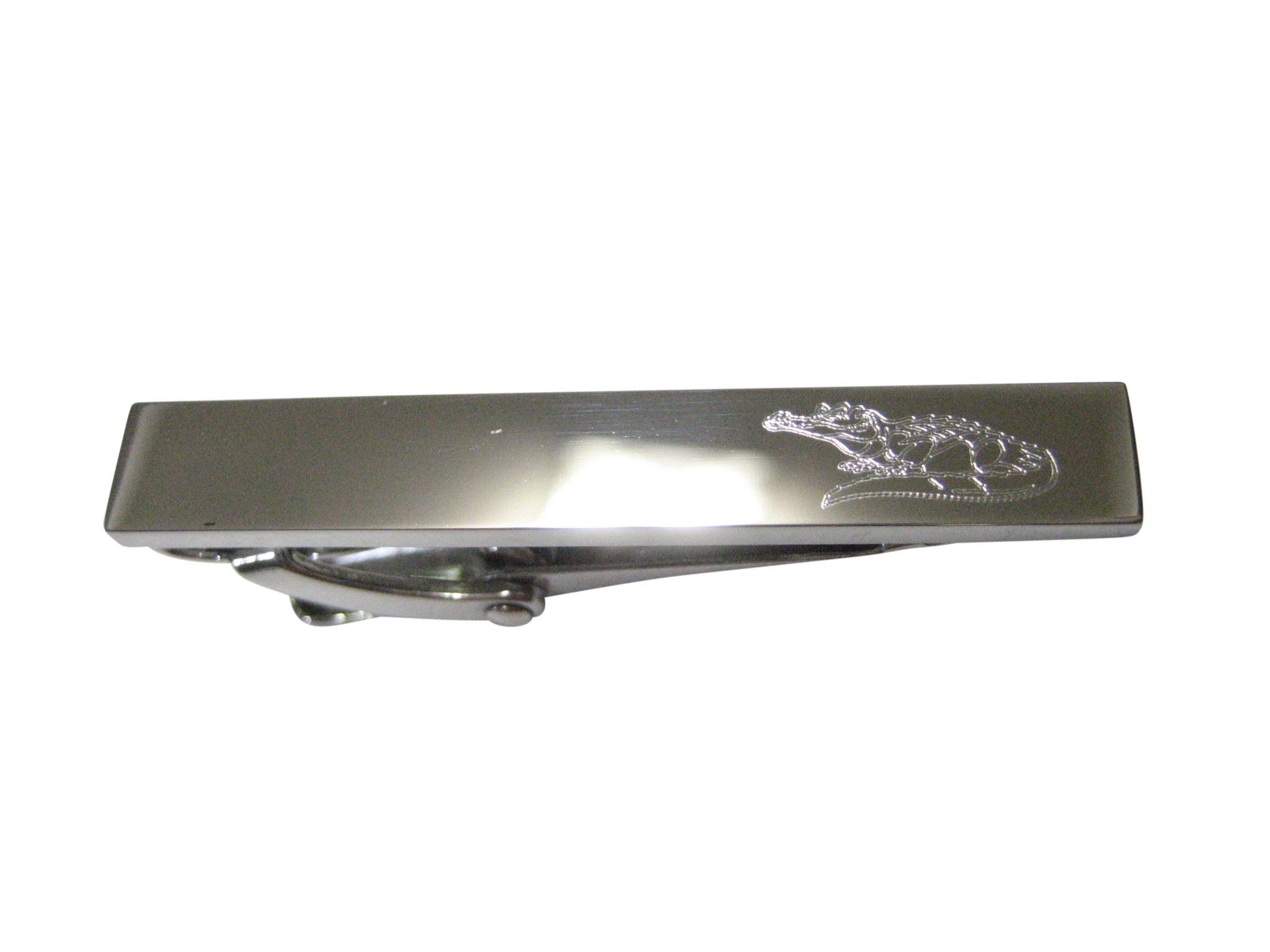 Silver Toned Etched Sleek Detailed Alligator Skinny Tie Clip
