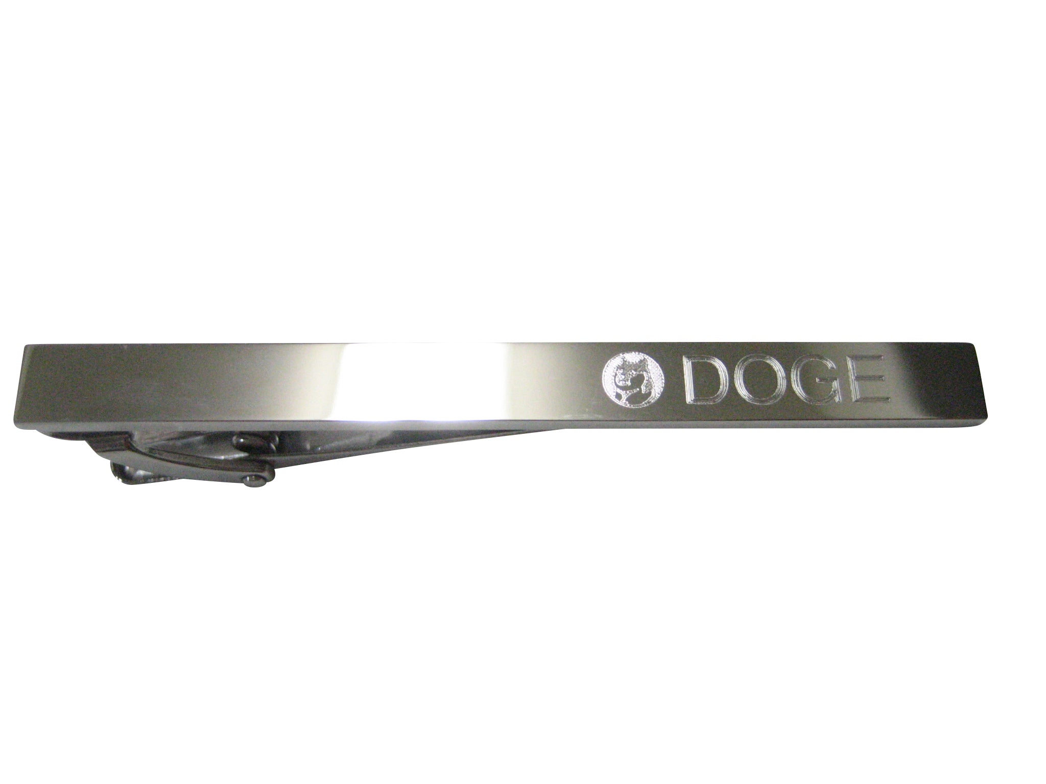 Silver Toned Etched Sleek Doge Coin Cryptocurrency Blockchain With Shiba Dog Tie Clip