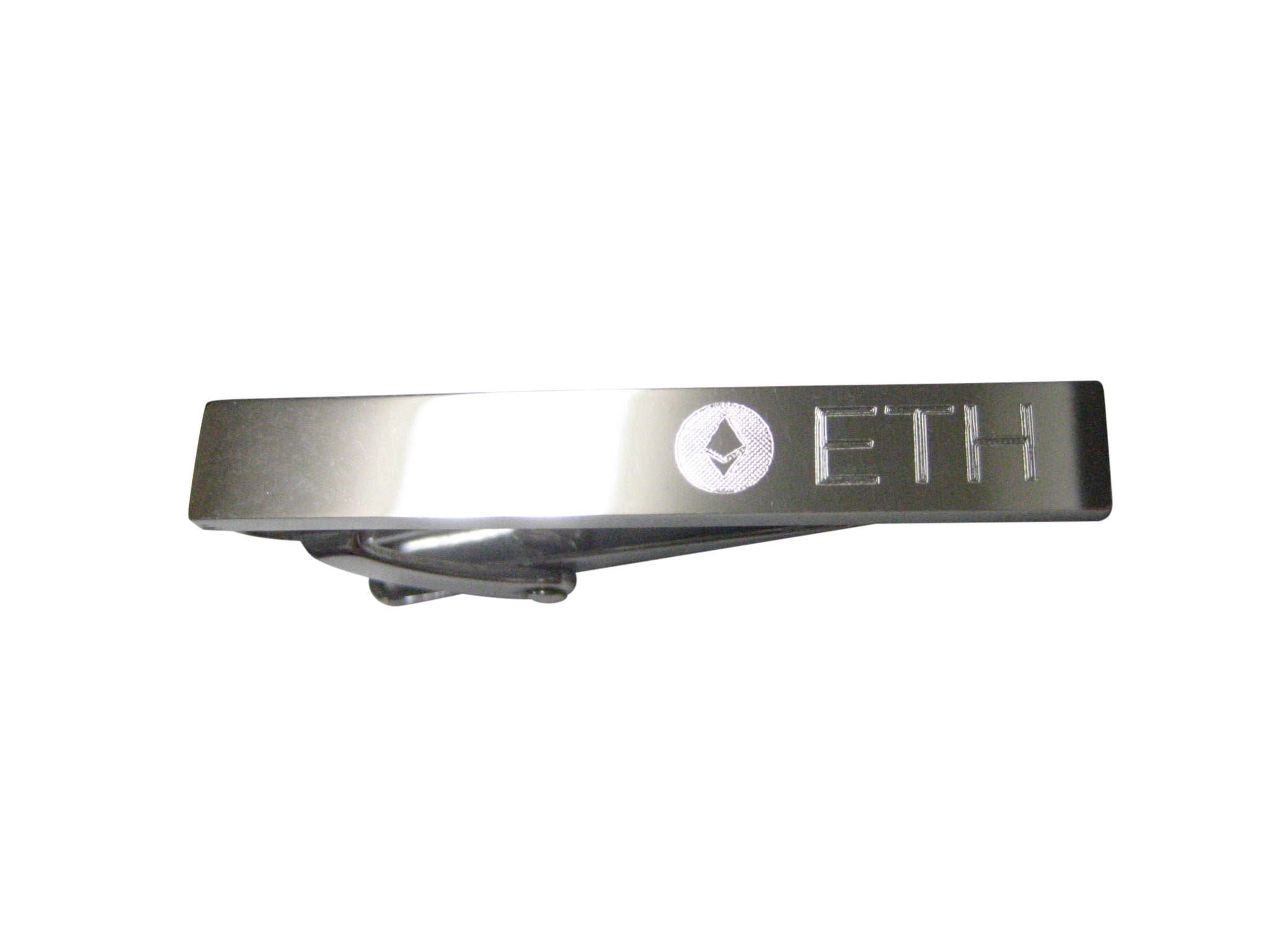 Silver Toned Etched Sleek Ethereum Coin Cryptocurrency Blockchain Skinny Tie Clip