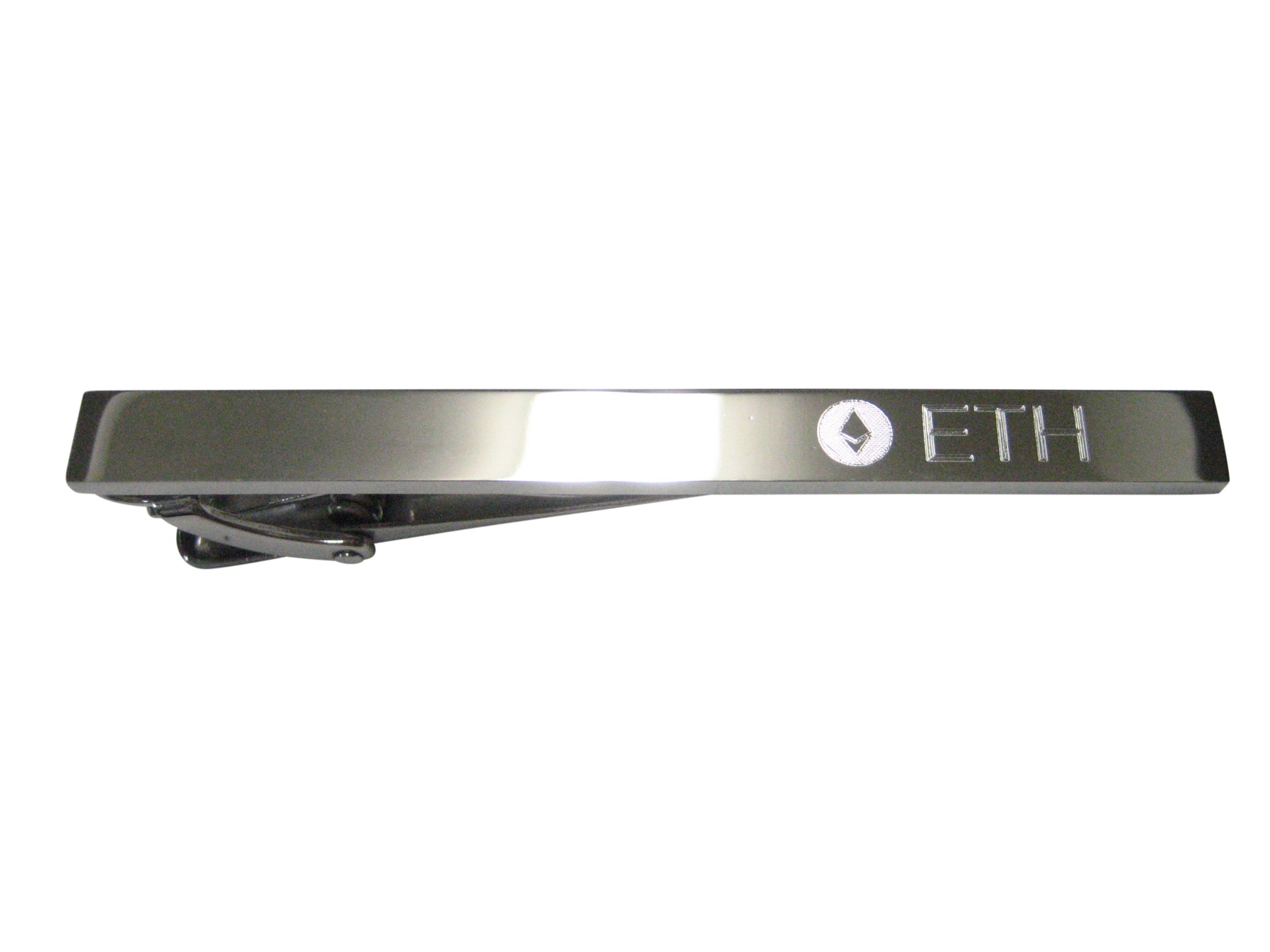 Silver Toned Etched Sleek Ethereum Coin Cryptocurrency Blockchain Tie Clip