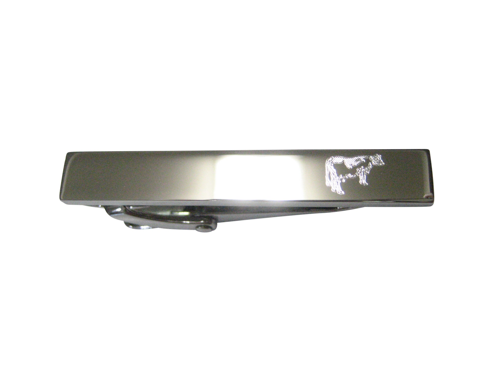Silver Toned Etched Sleek Farm Cow Skinny Tie Clip