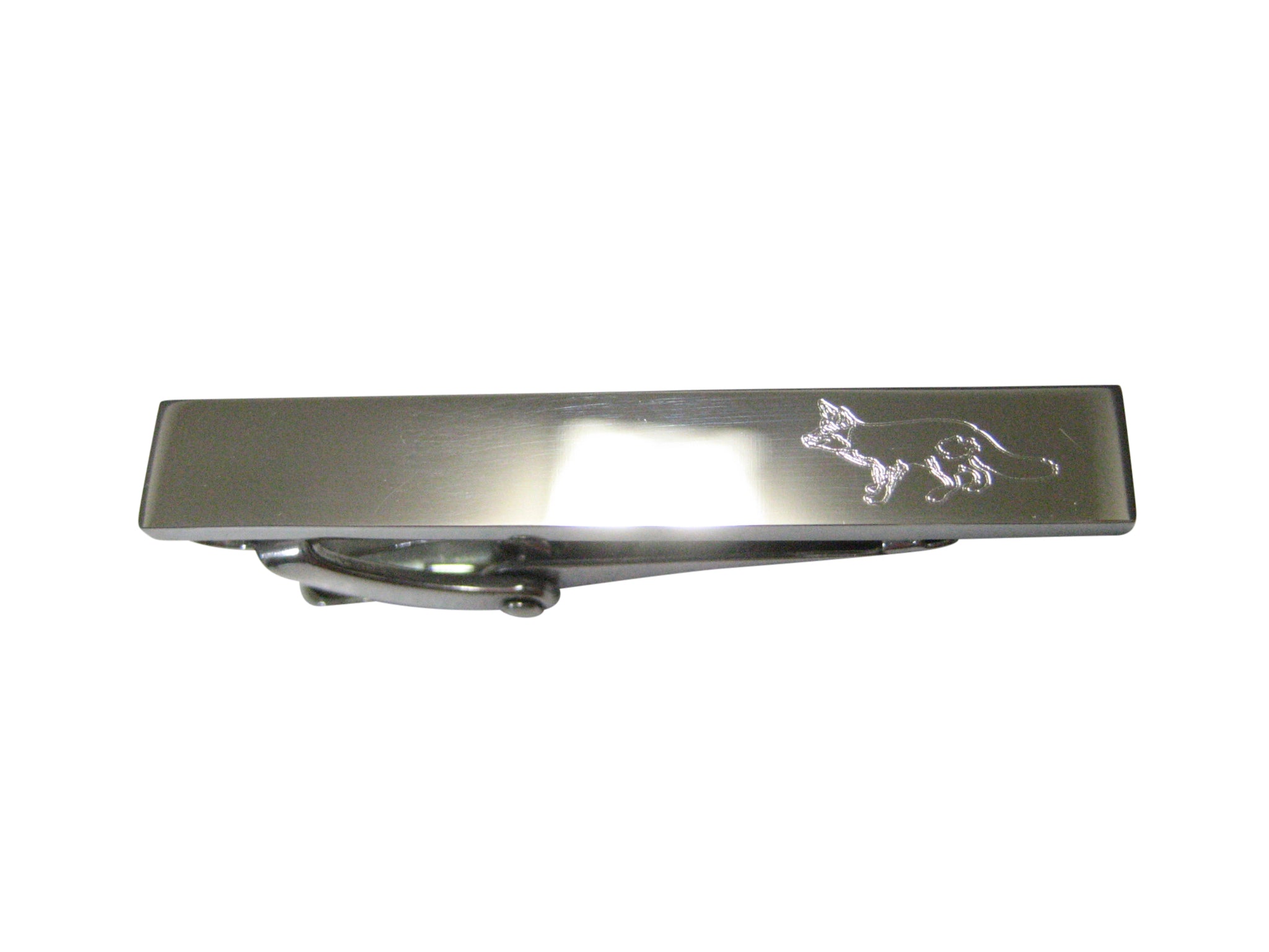 Silver Toned Etched Sleek Fox Skinny Tie Clip