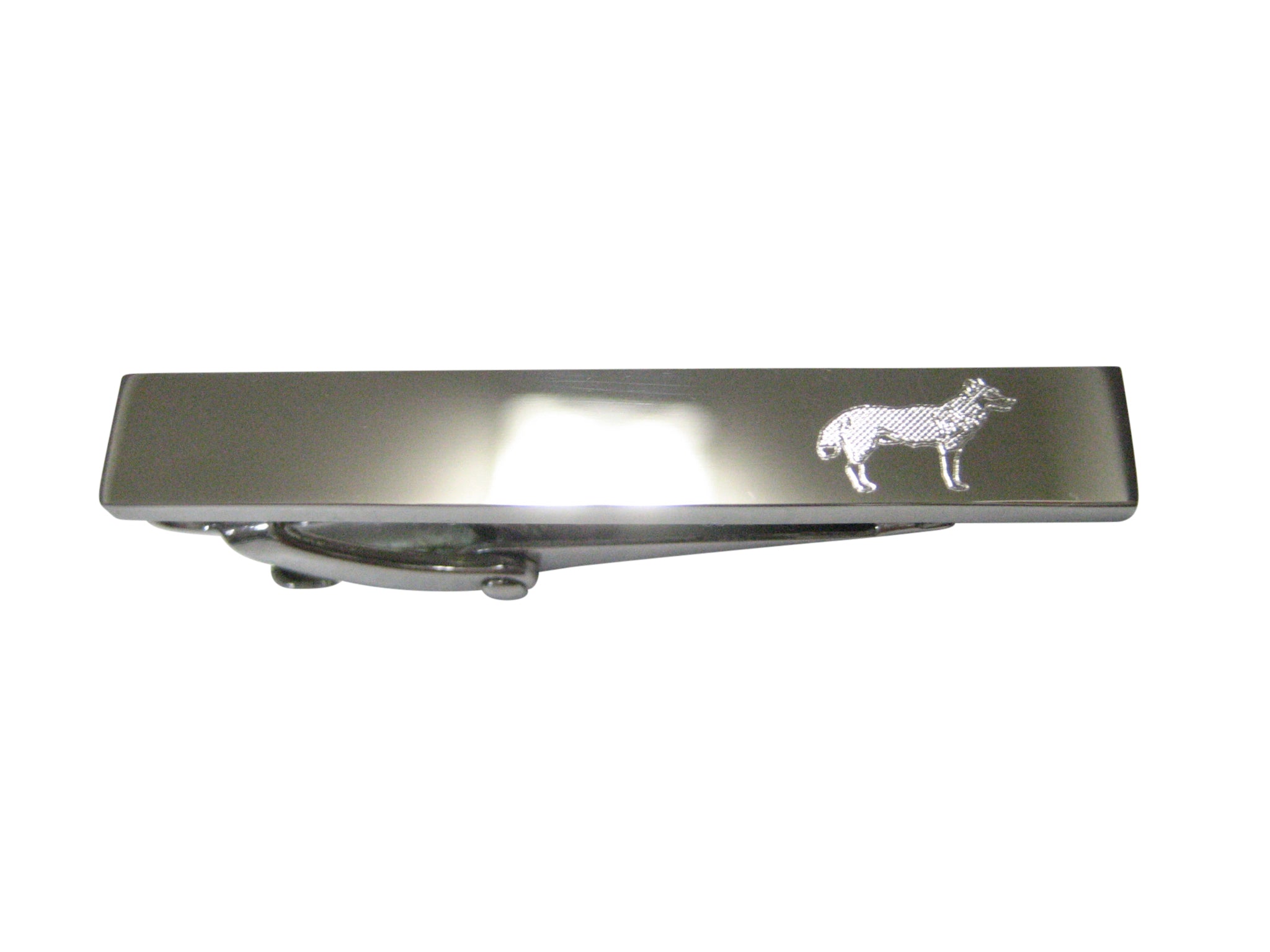 Silver Toned Etched Sleek Full Dog Skinny Tie Clip