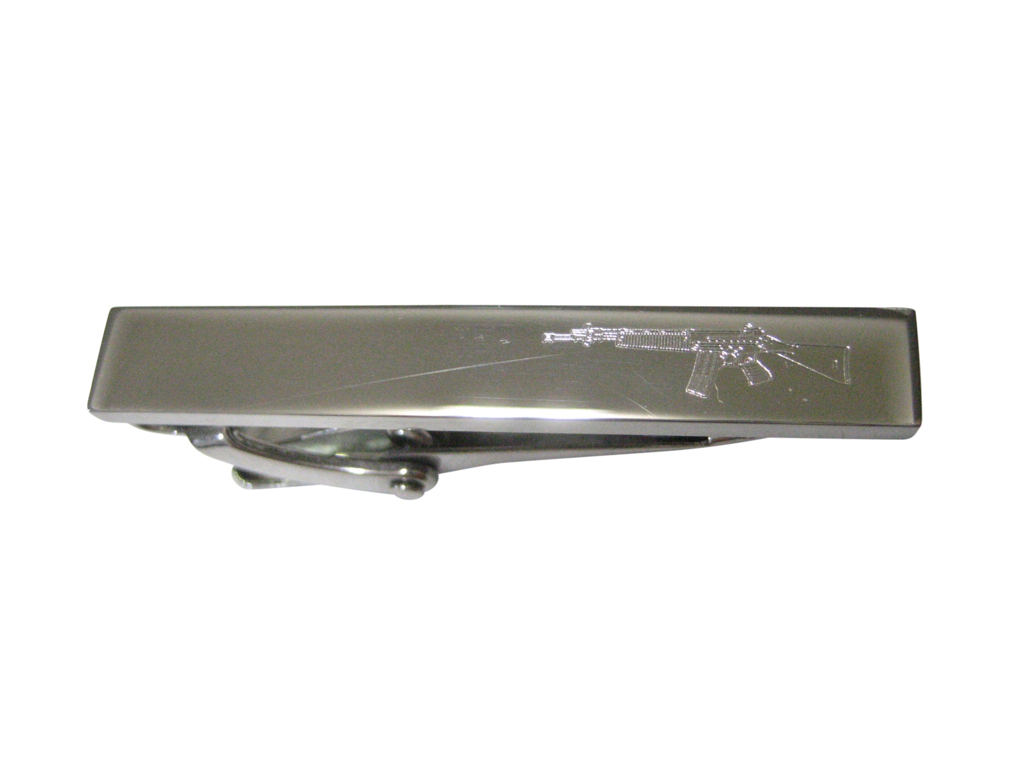 Silver Toned Etched Sleek Left Facing AK47 Rifle Skinny Tie Clip