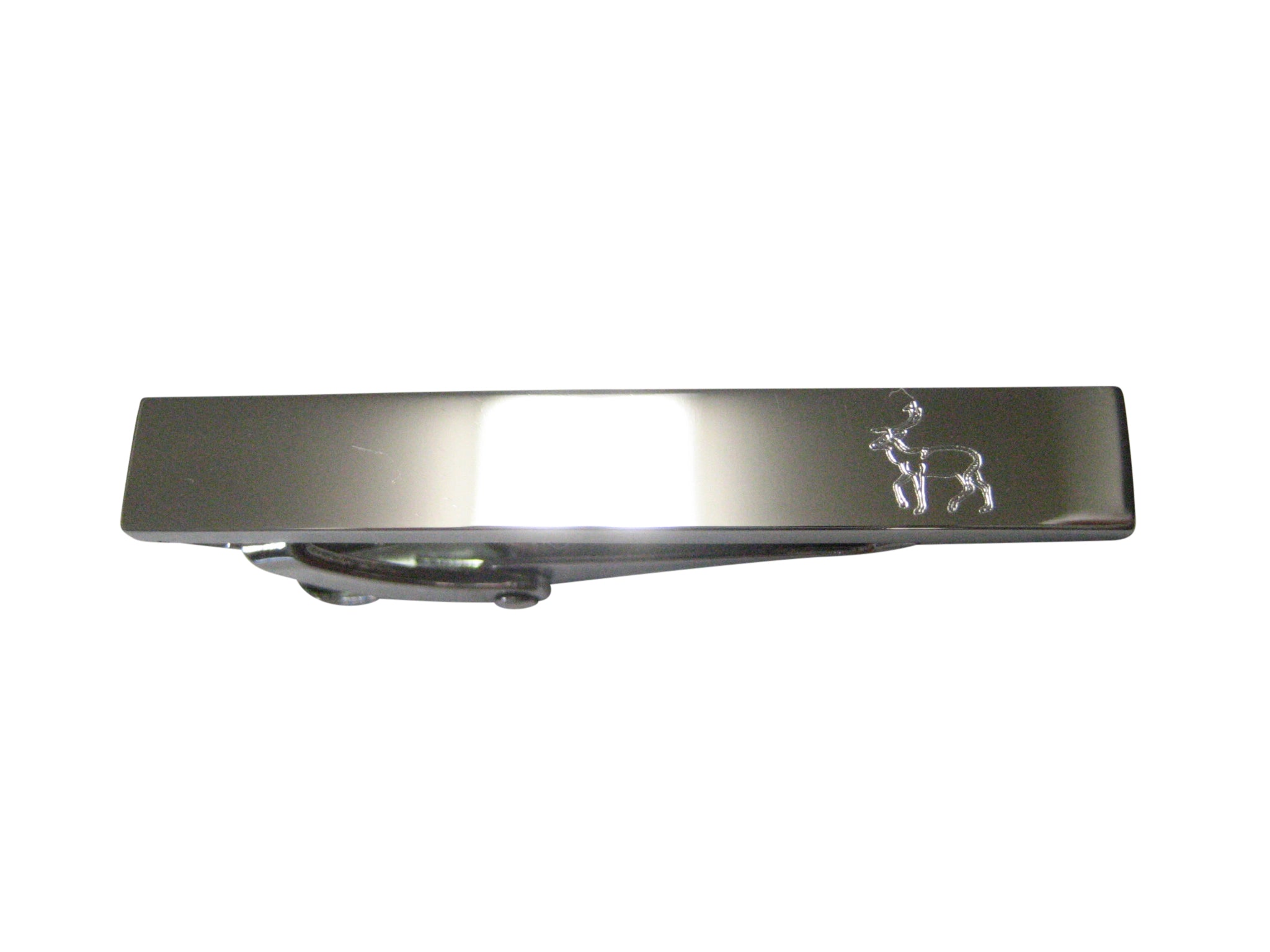 Silver Toned Etched Sleek Left Facing Fallow Deer Skinny Tie Clip