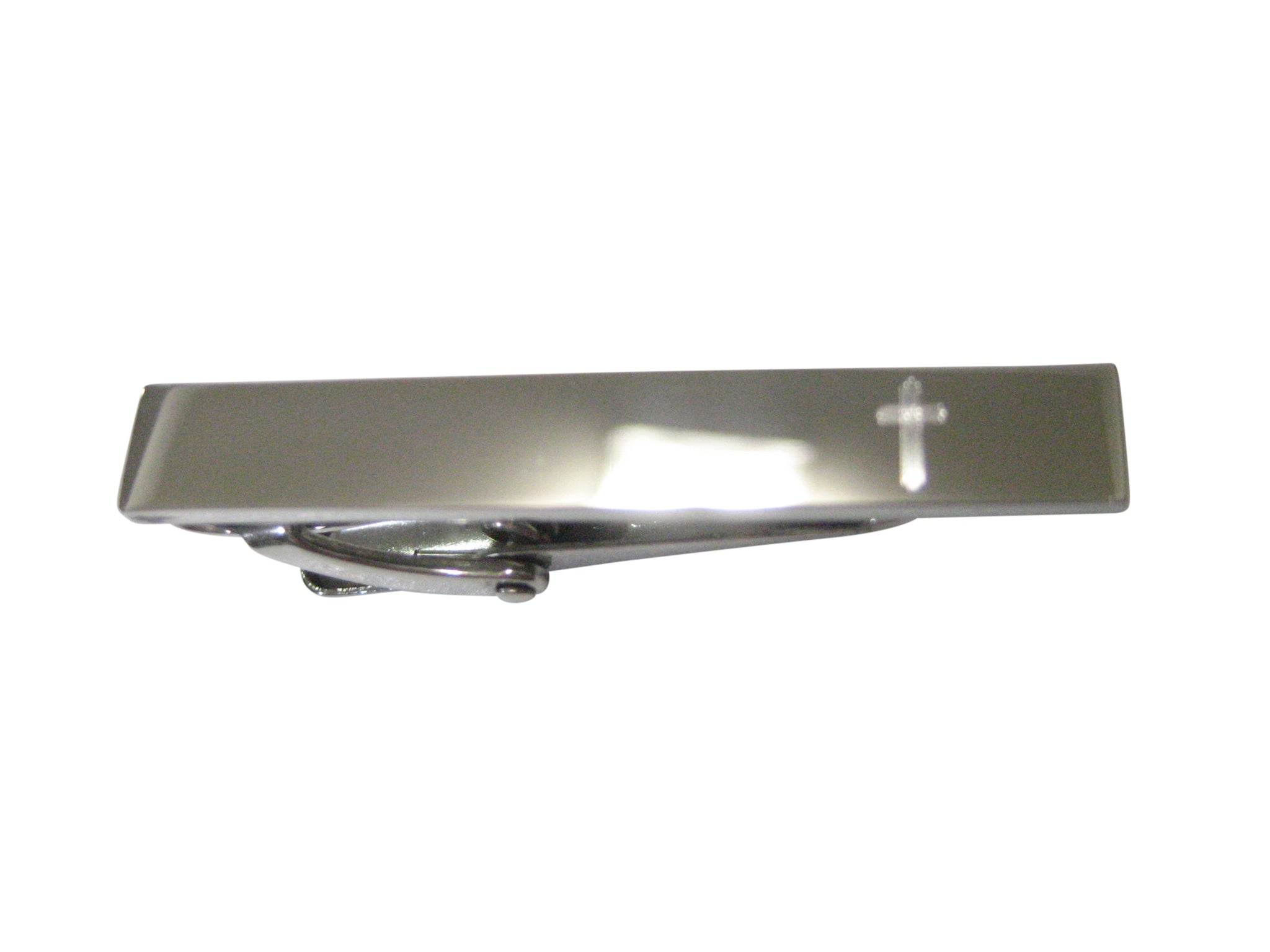 Silver Toned Etched Sleek Lined Religious Cross Skinny Tie Clip