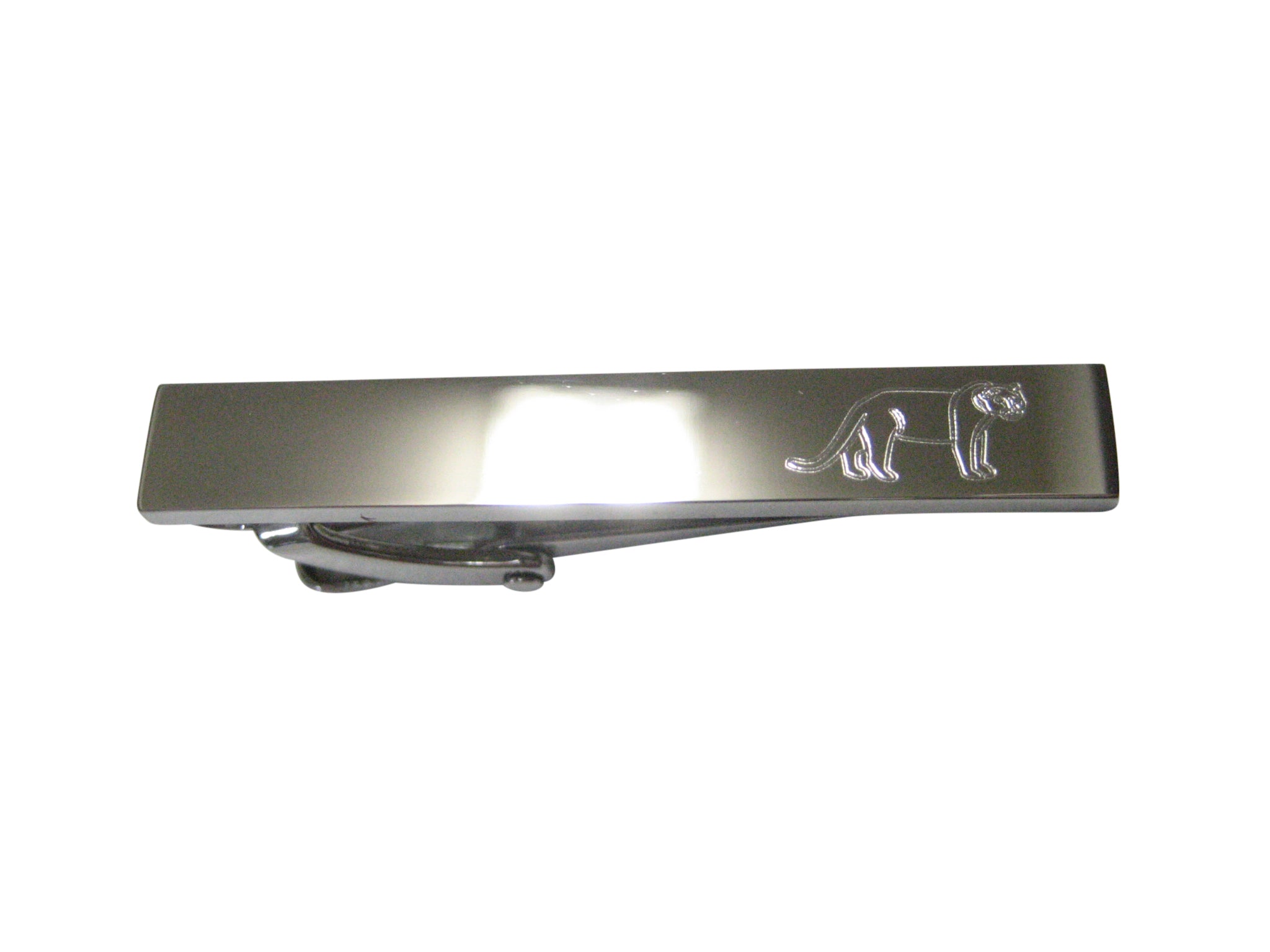 Silver Toned Etched Sleek Lioness Skinny Tie Clip