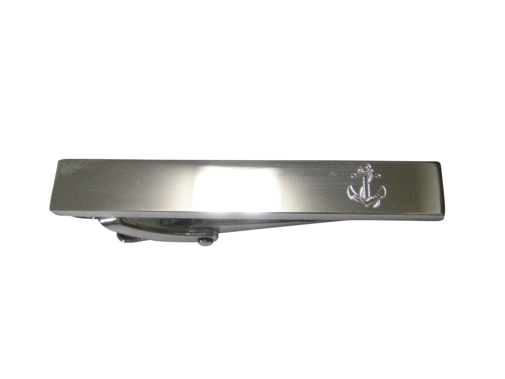 Silver Toned Etched Sleek Nautical Roped Anchor Skinny Tie Clip