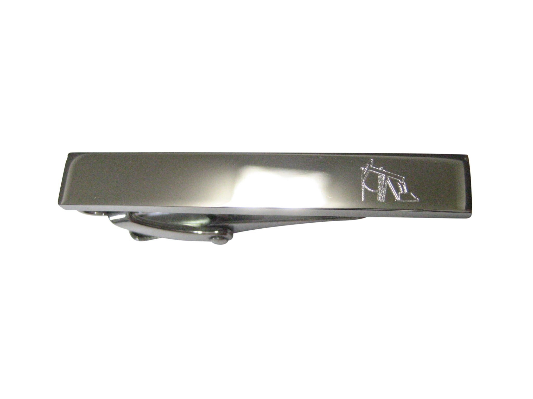 Silver Toned Etched Sleek Oil Drill Skinny Tie Clip