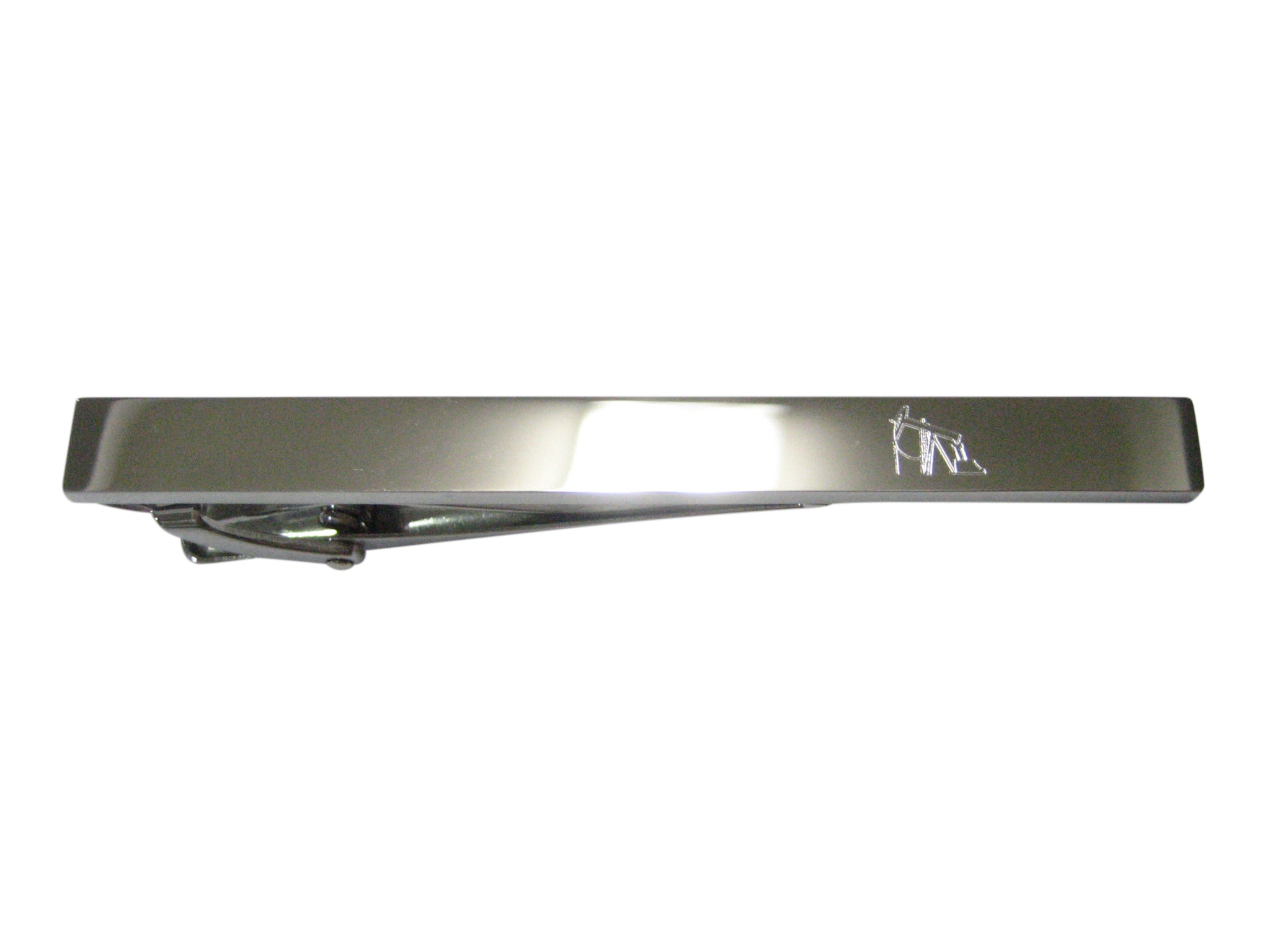 Silver Toned Etched Sleek Oil Drill Tie Clip