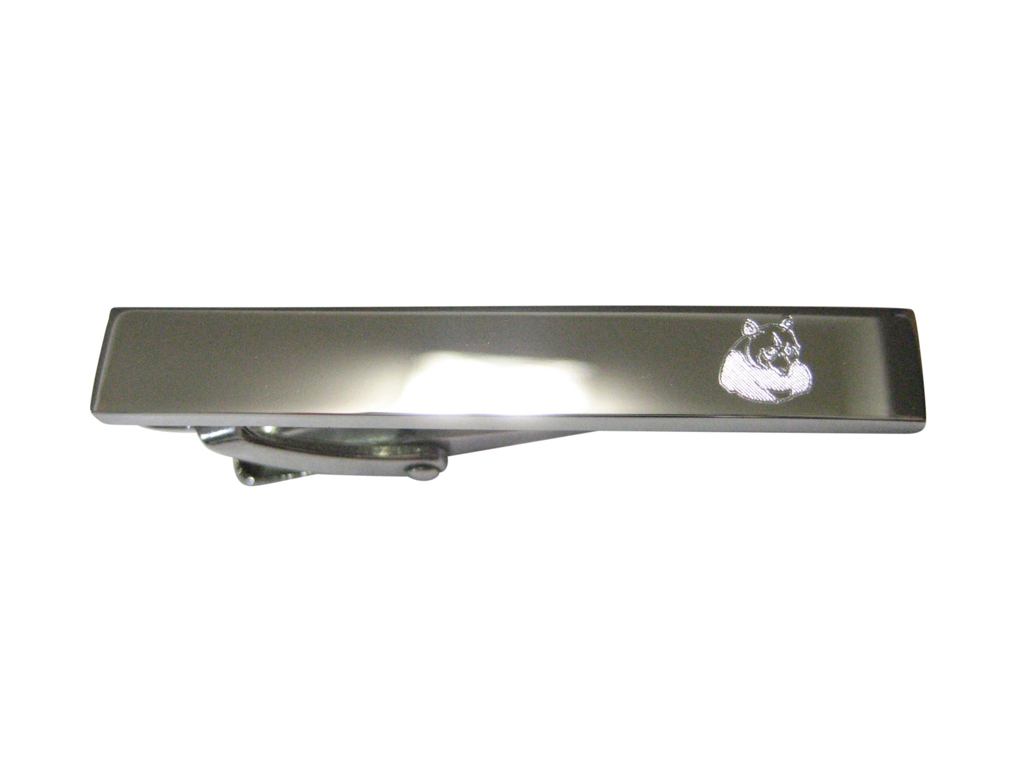 Silver Toned Etched Sleek Panda Bear Skinny Tie Clip