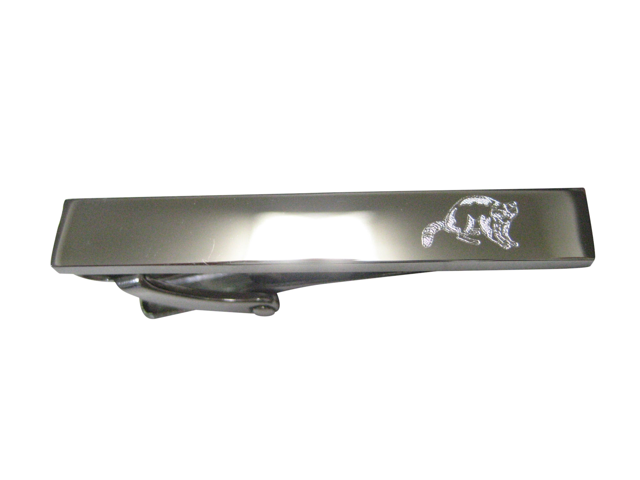 Silver Toned Etched Sleek Raccoon Skinny Tie Clip