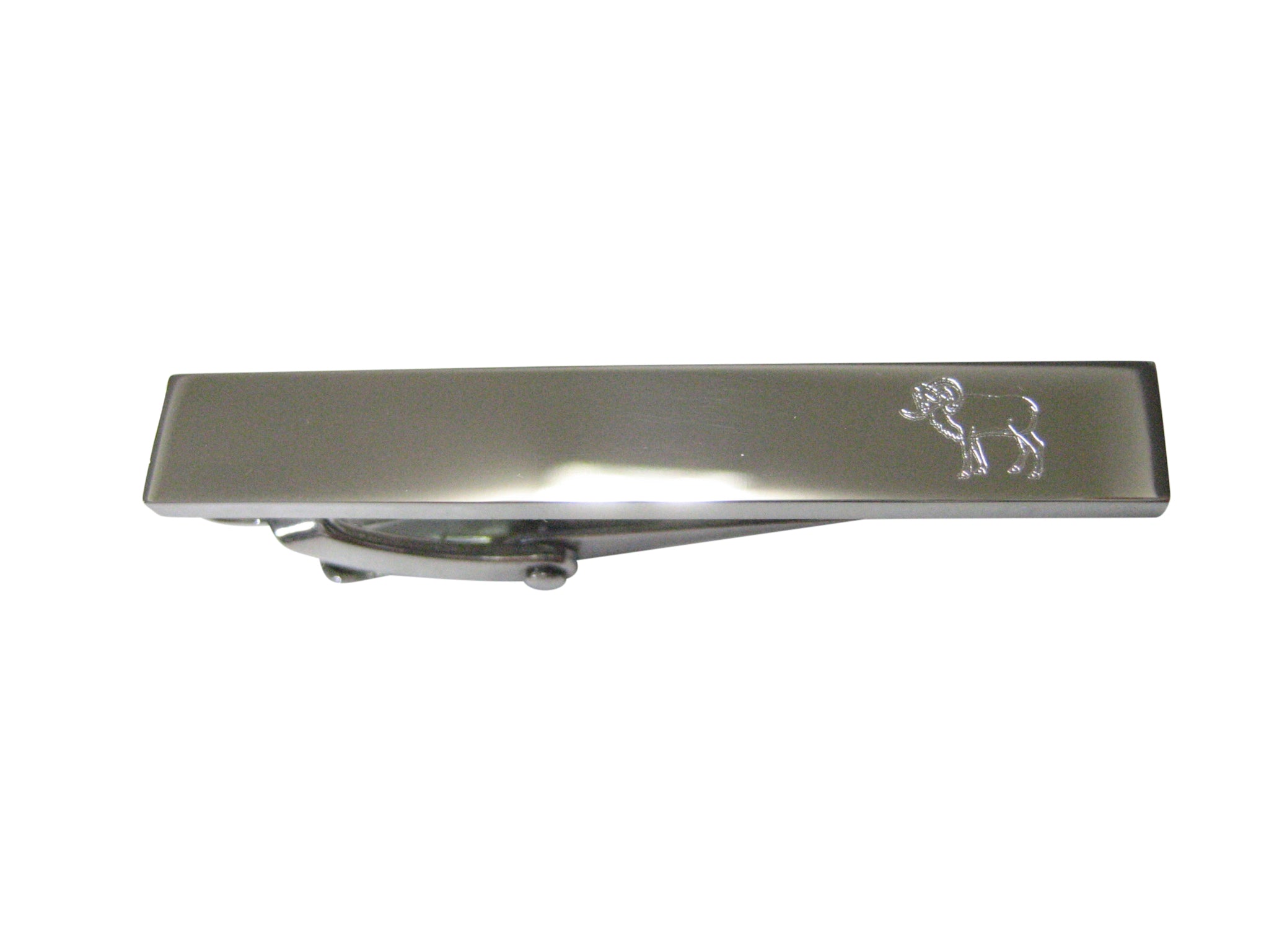 Silver Toned Etched Sleek Ram Skinny Tie Clip