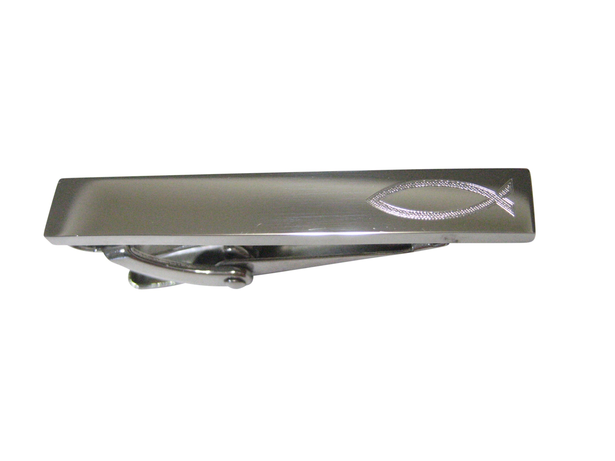 Silver Toned Etched Sleek Religious Ichthys Fish Skinny Tie Clip
