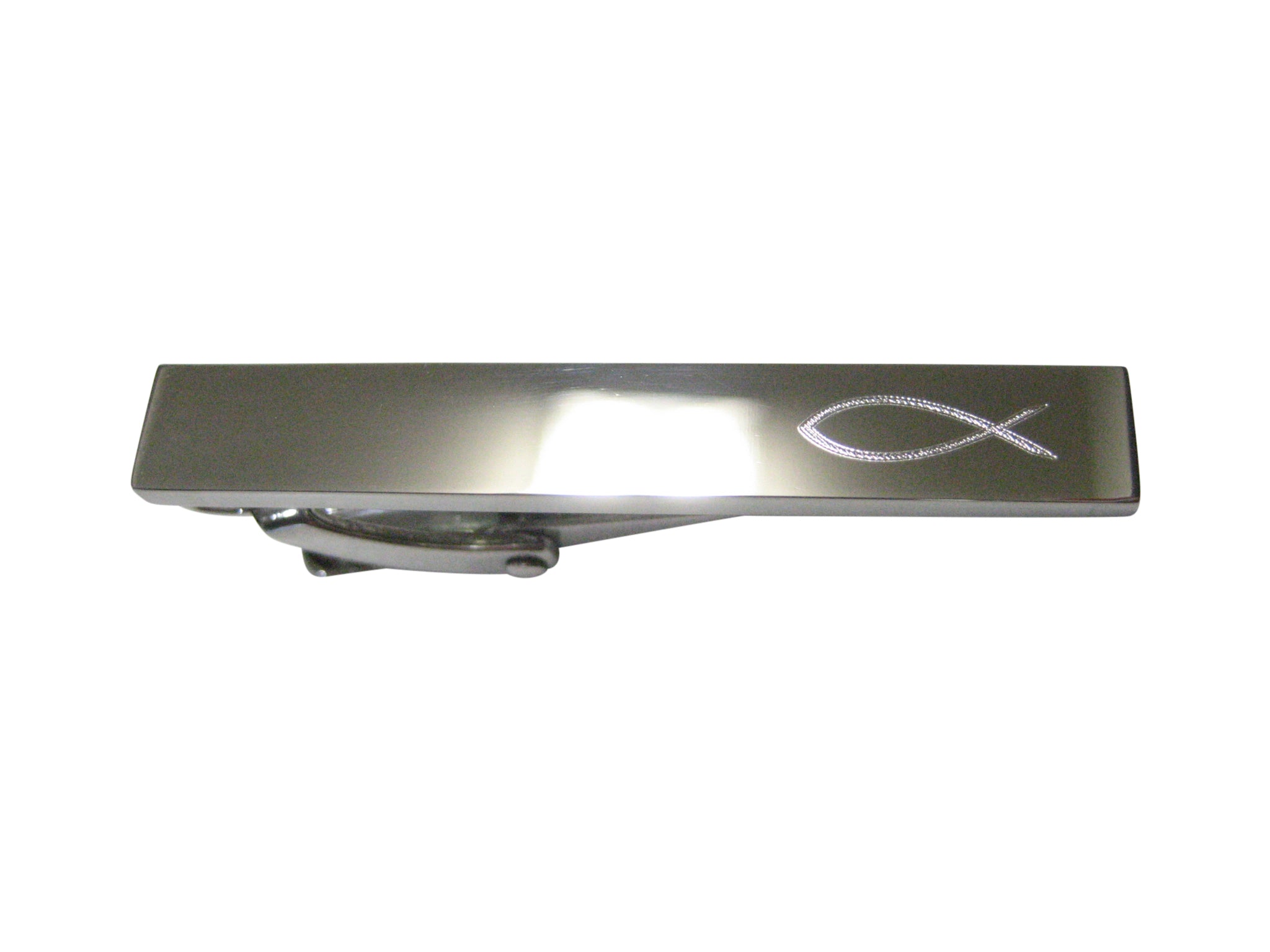 Silver Toned Etched Sleek Religious Ichthys Fish V2 Skinny Tie Clip
