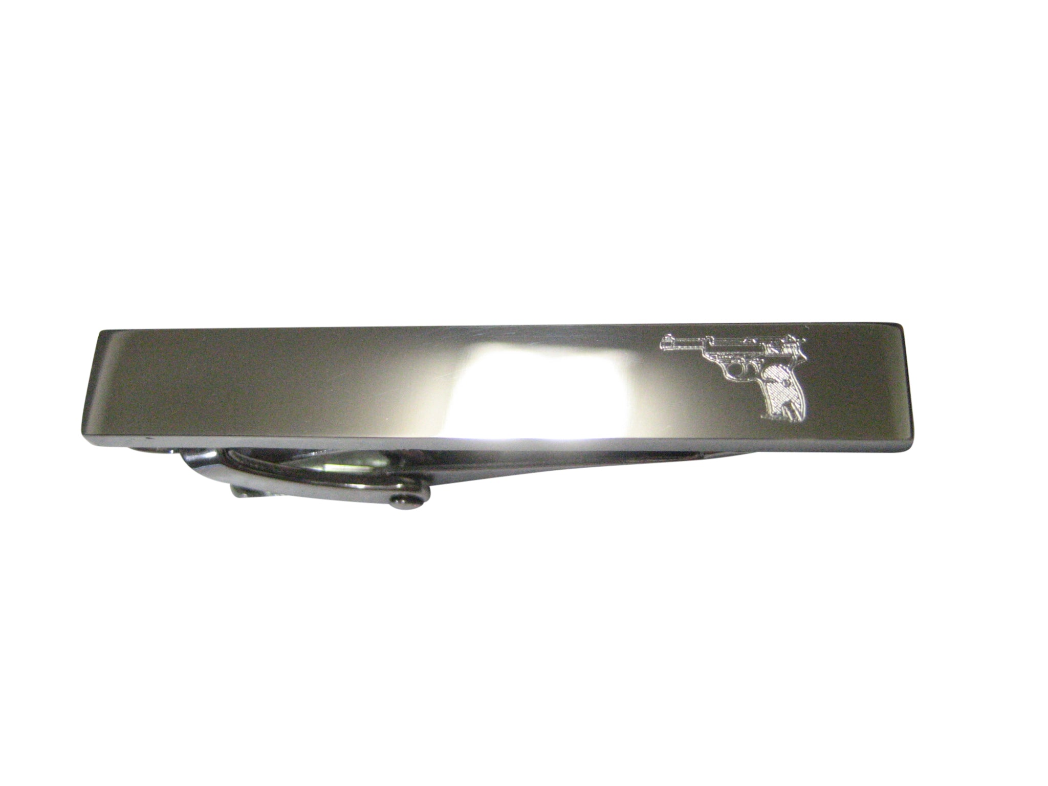 Silver Toned Etched Sleek Retro Handgun Skinny Tie Clip