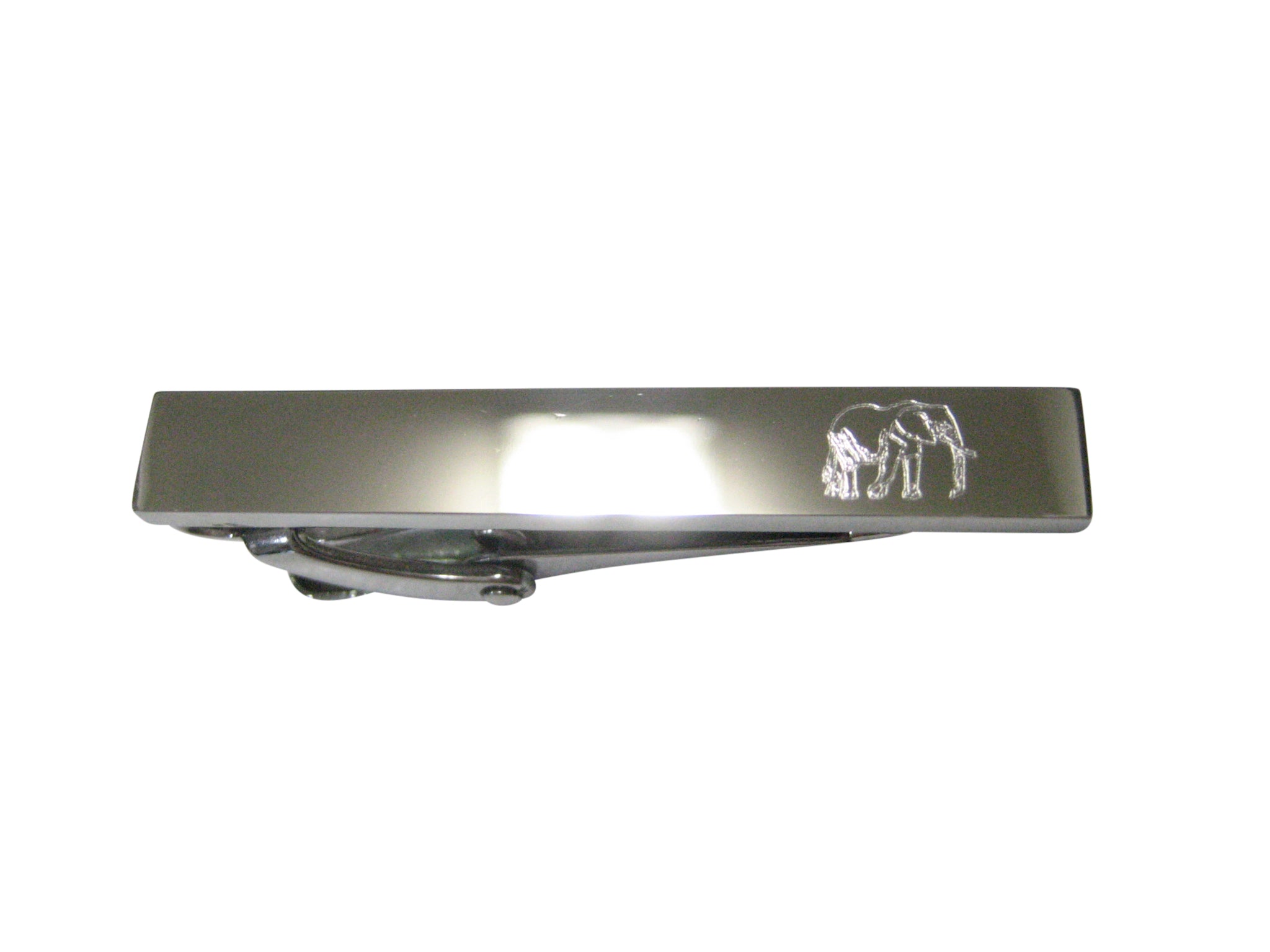 Silver Toned Etched Sleek Right Facing Elephant Skinny Tie Clip