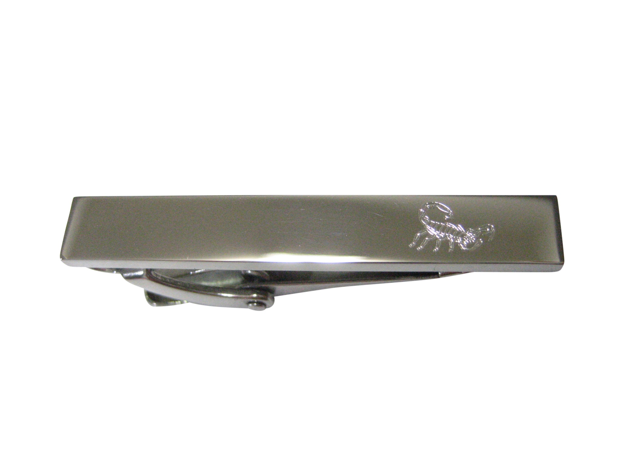 Silver Toned Etched Sleek Scorpion Skinny Tie Clip