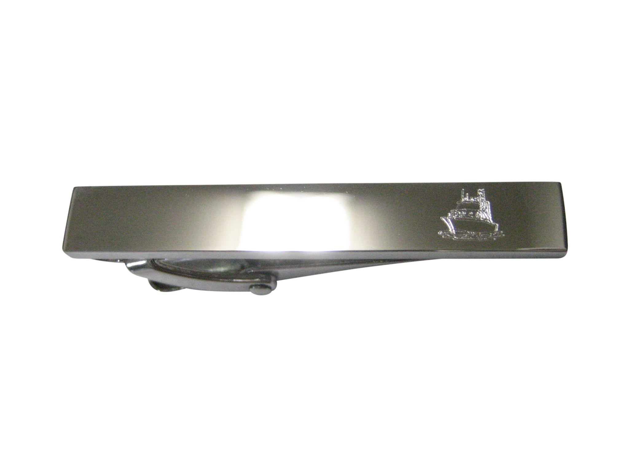 Silver Toned Etched Sleek Ship Skinny Tie Clip