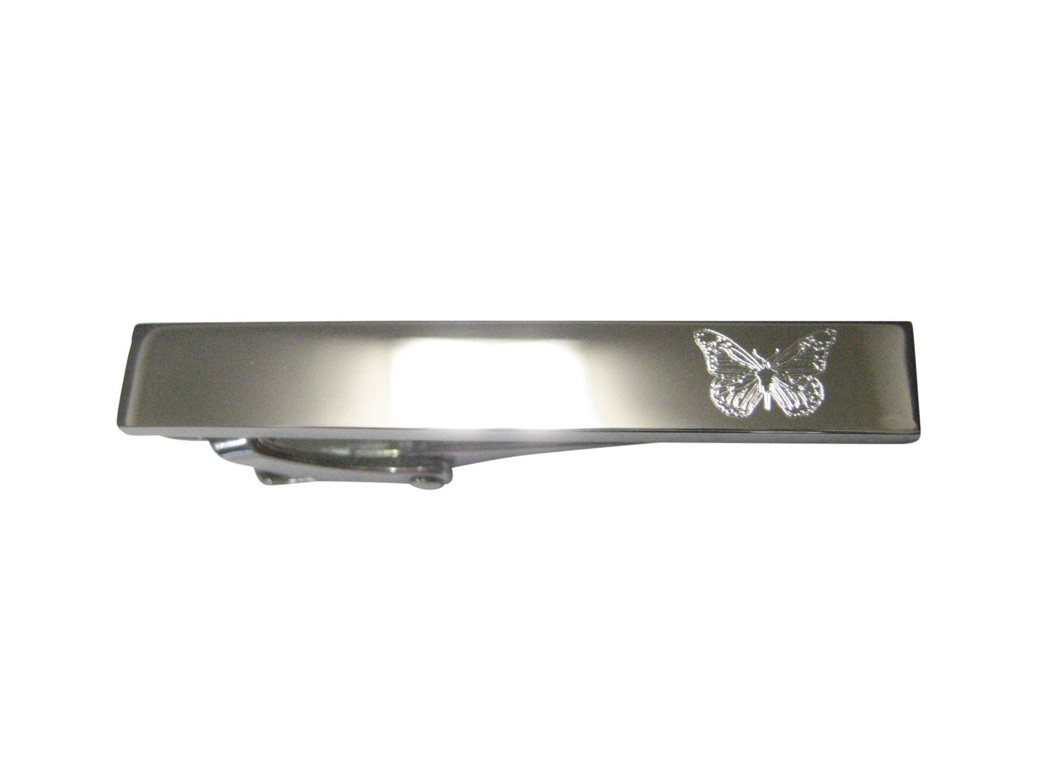 Silver Toned Etched Sleek Simple Butterfly Bug Skinny Tie Clip