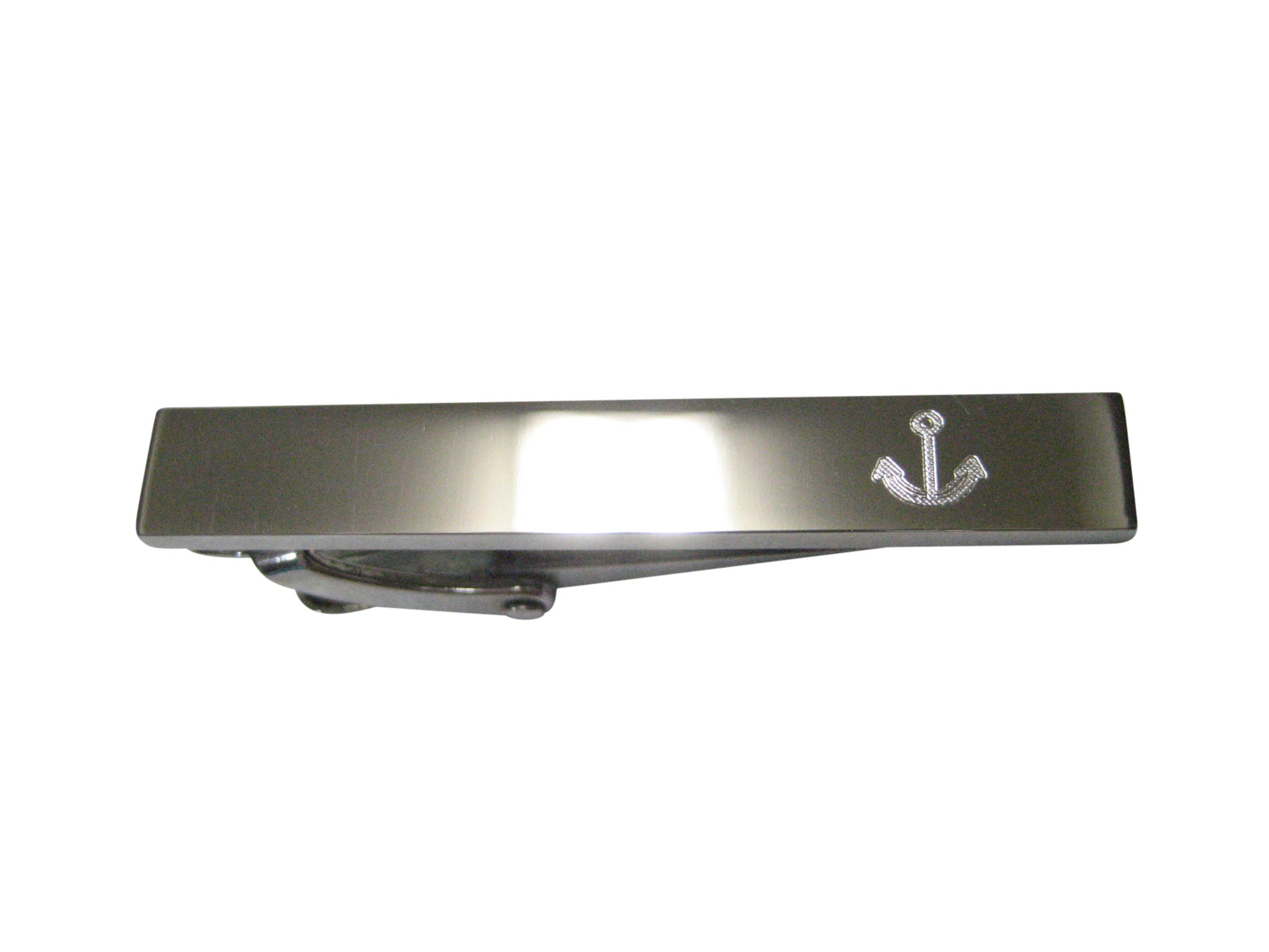 Silver Toned Etched Sleek Simple Nautical Anchor Skinny Tie Clip