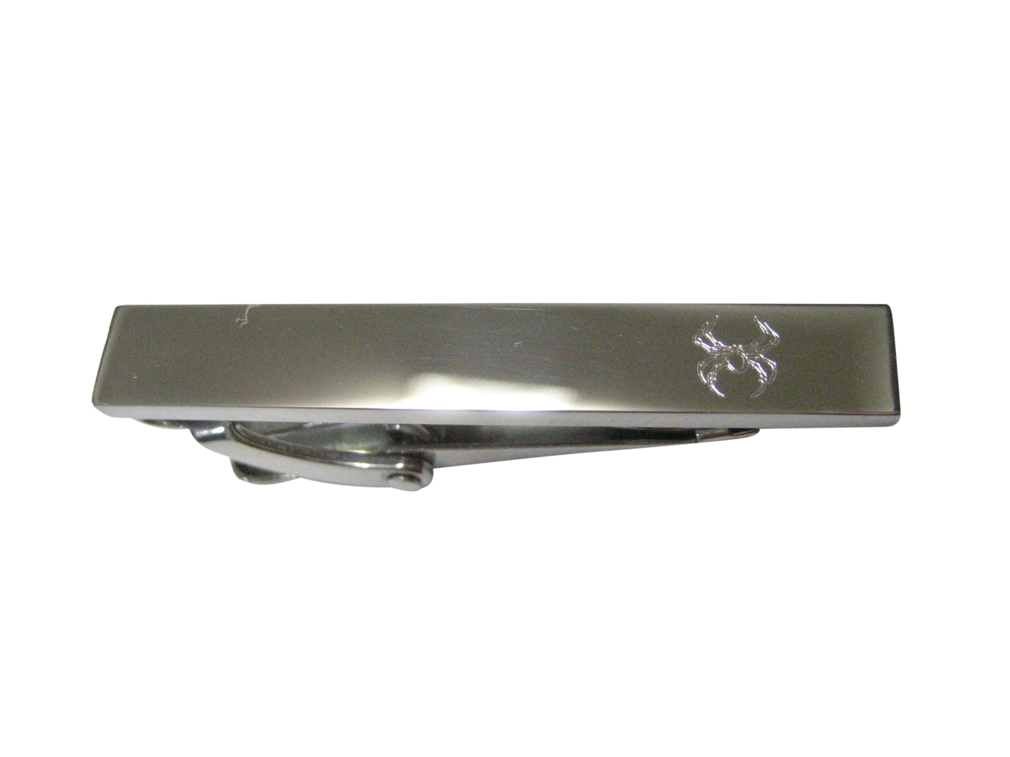 Silver Toned Etched Sleek Spider Bug Insect Skinny Tie Clip