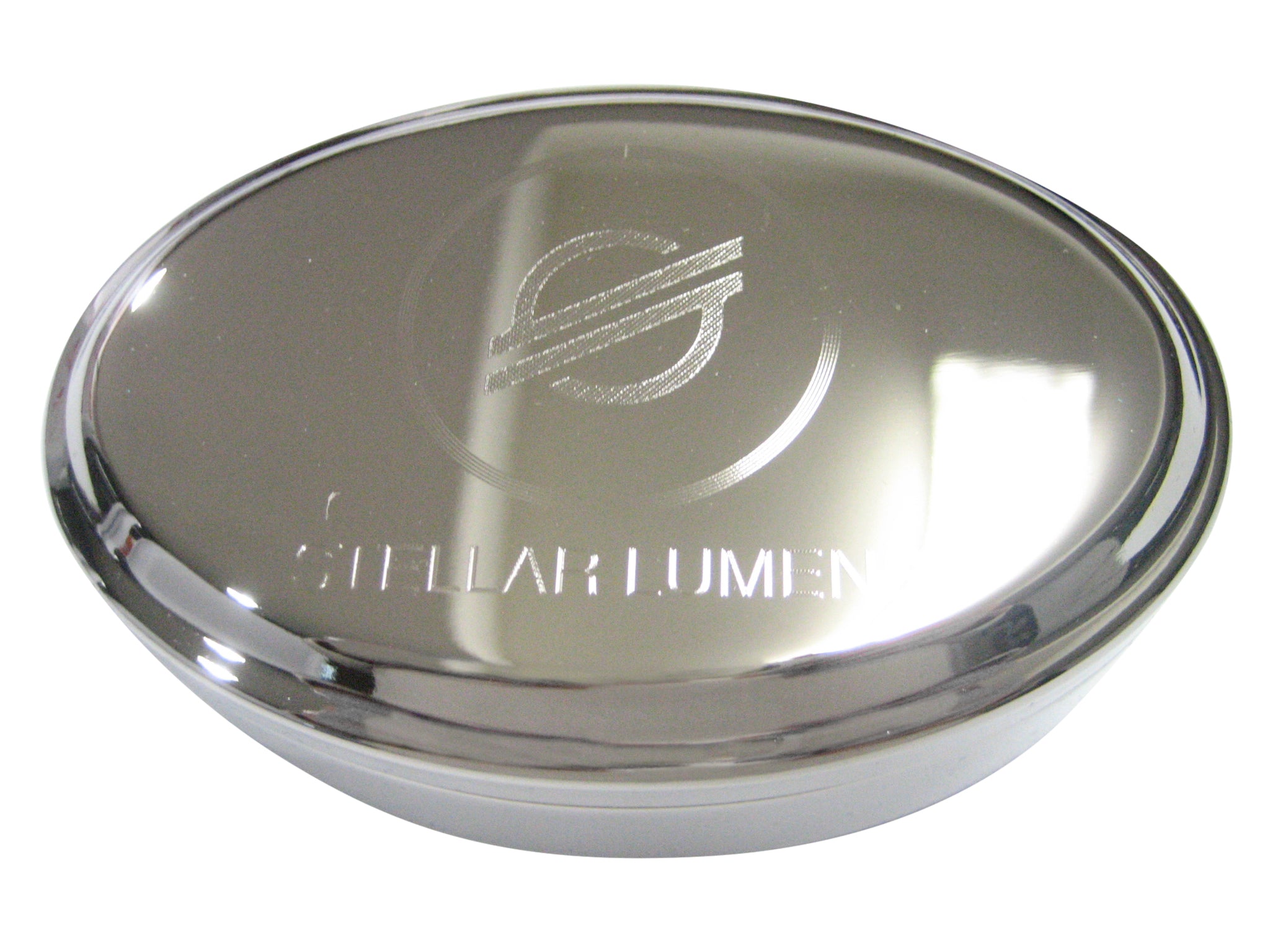 Silver Toned Etched Sleek Stellar Lumens Coin XLM Cryptocurrency Blockchain Oval Trinket Jewelry Box