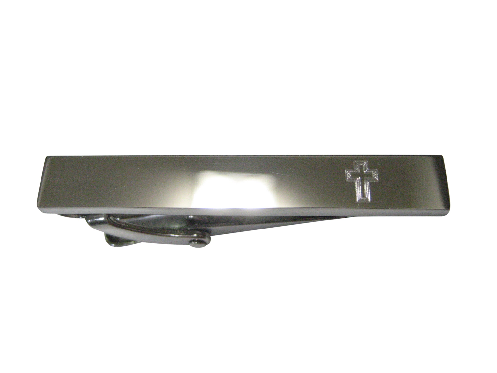 Silver Toned Etched Sleek Triple Religious Cross Skinny Tie Clip