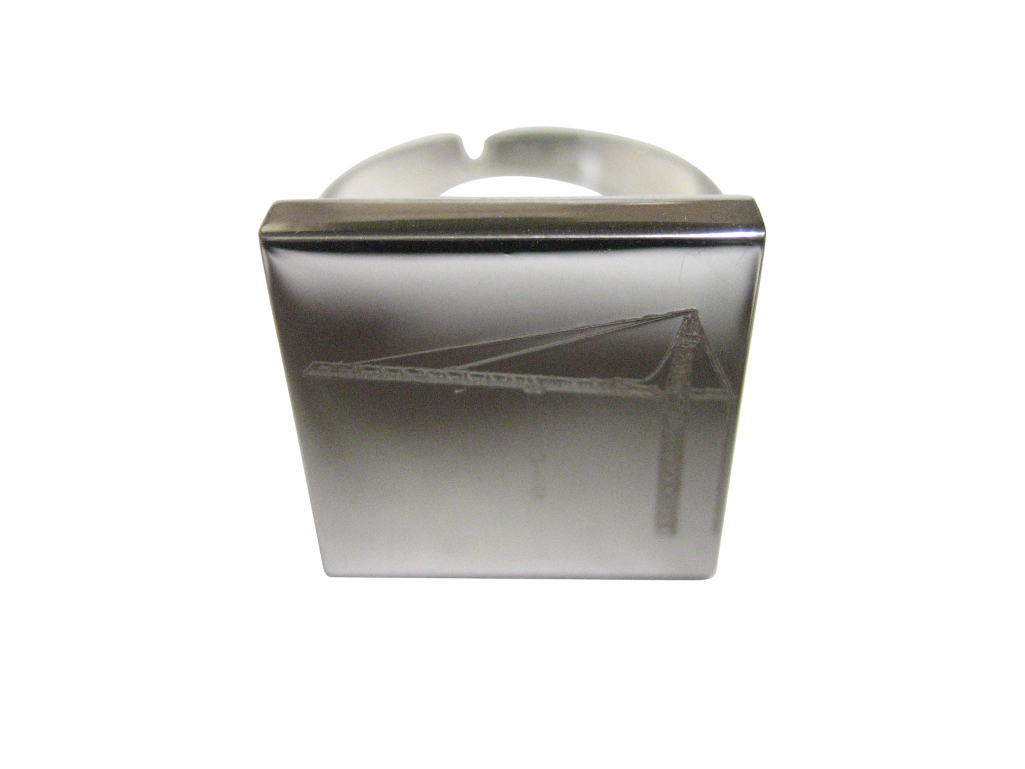 Silver Toned Etched Square Construction Crane Adjustable Size Fashion Ring