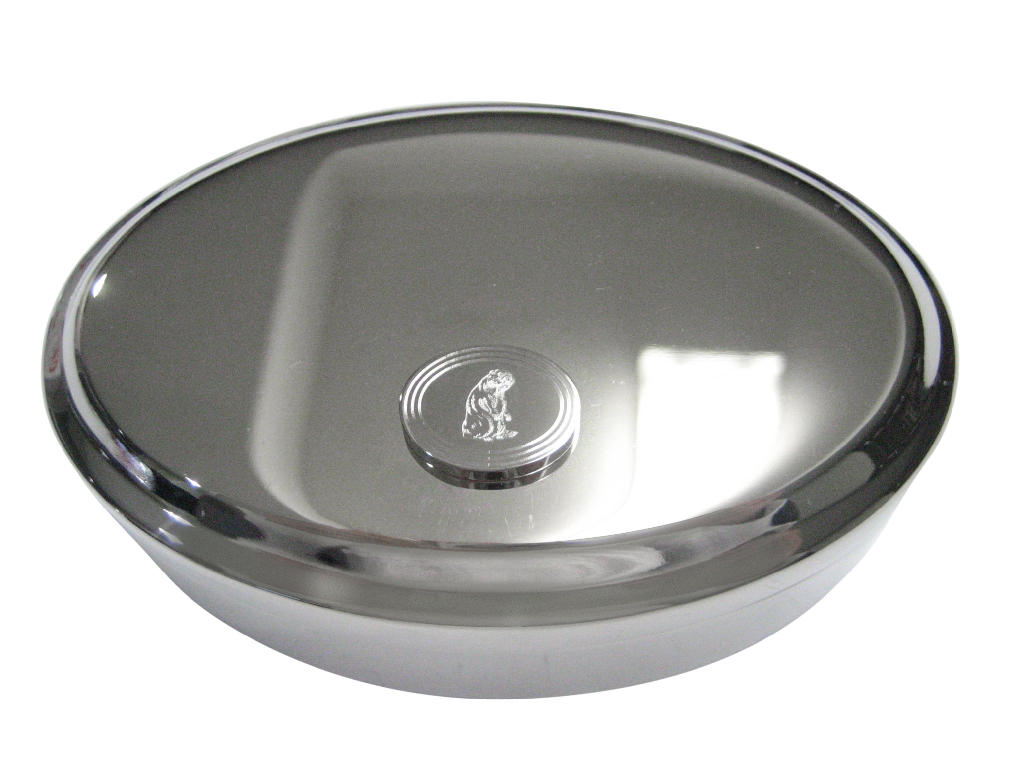 Silver Toned Etched Standing Beaver Oval Trinket Jewelry Box