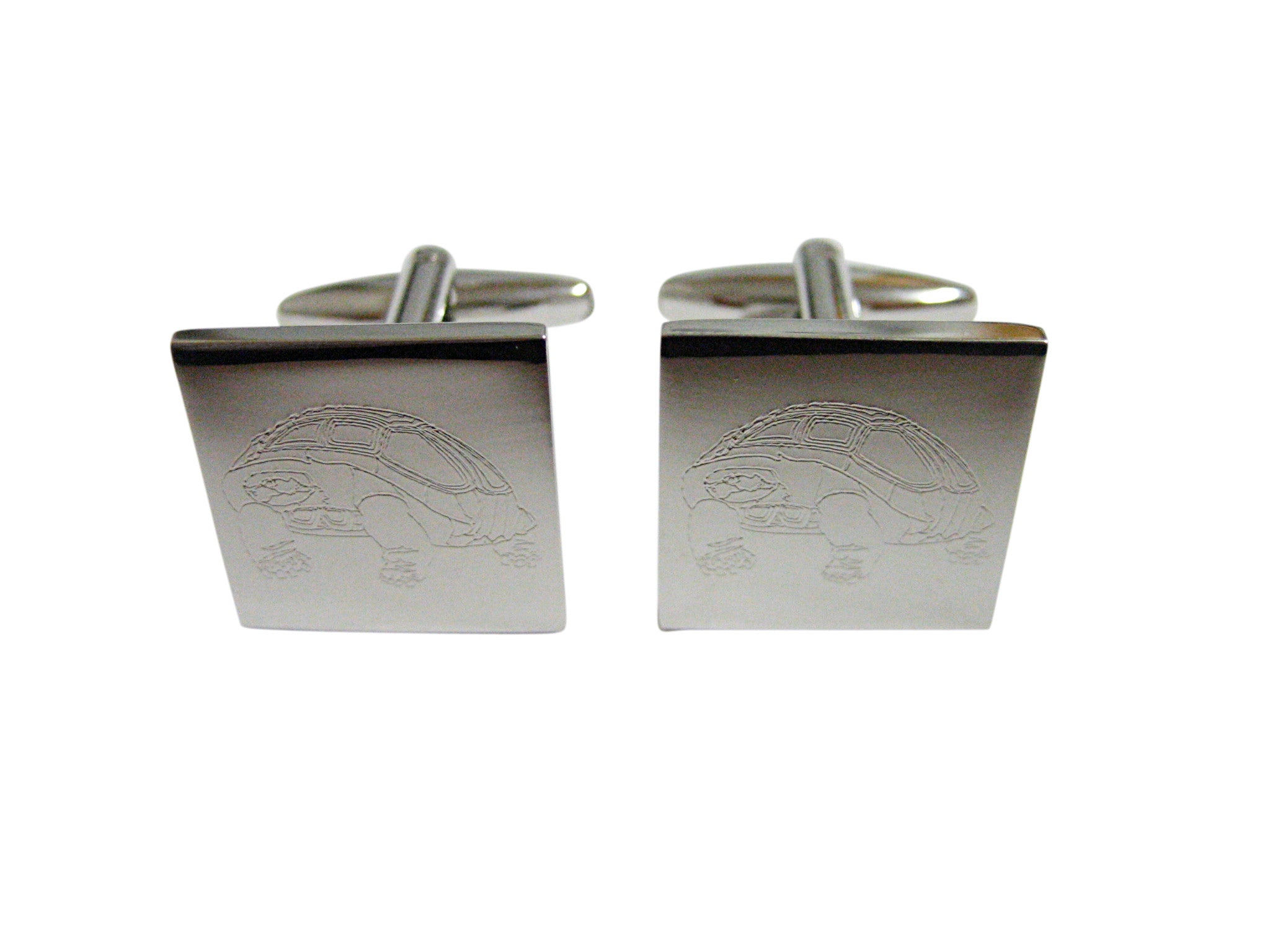 Silver Toned Etched Turtle Cufflinks