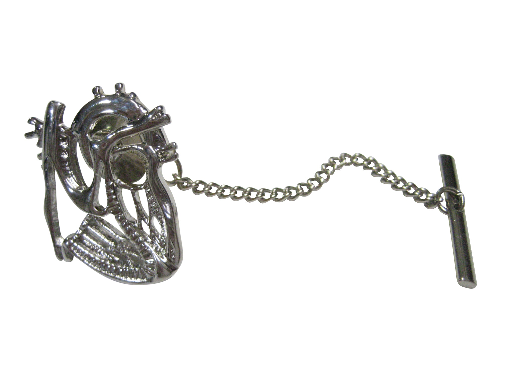 Silver Toned Flat Anatomical Heart Outline Tie Tack