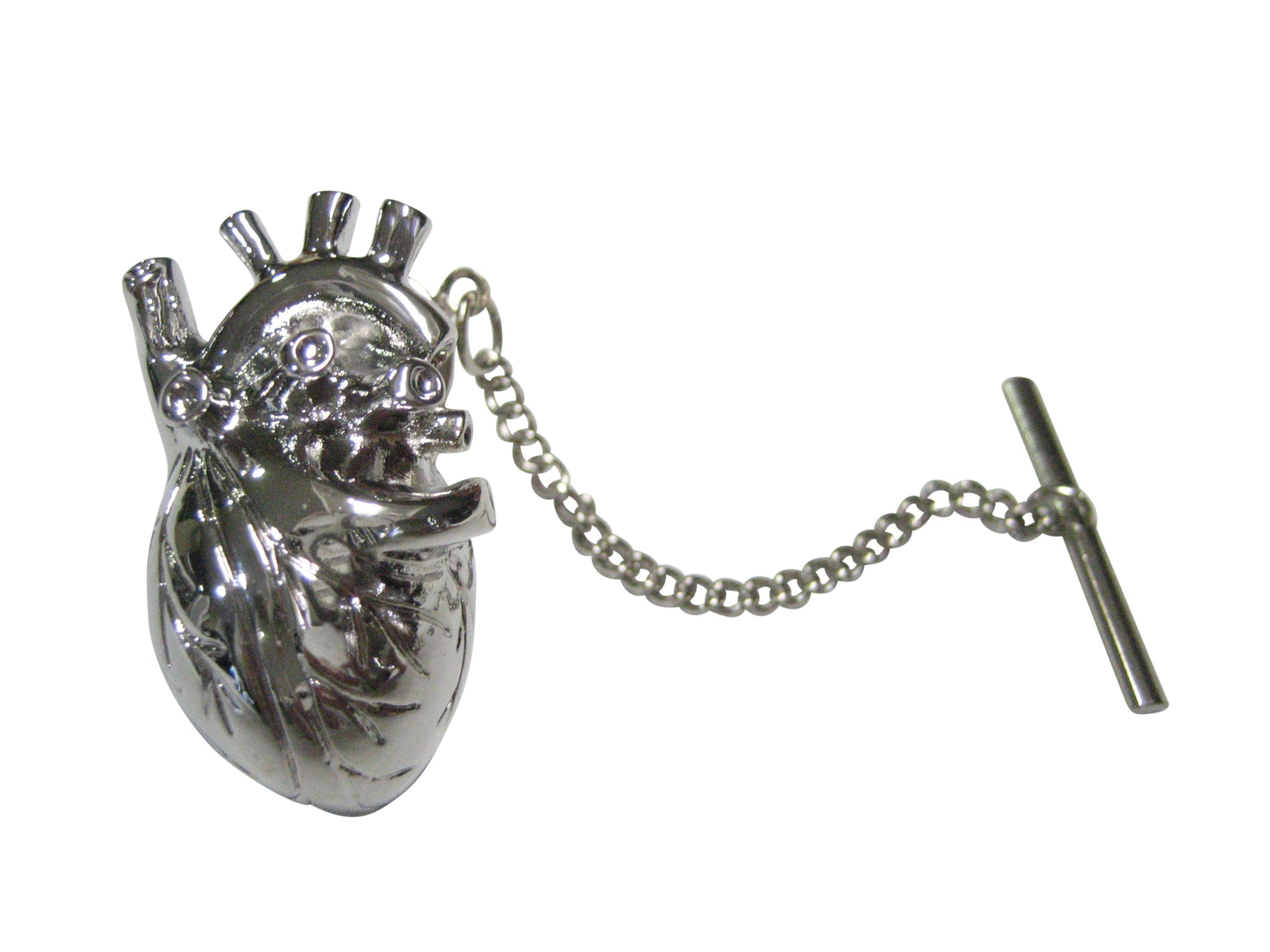 Silver Toned Large Anatomical Heart Tie Tack