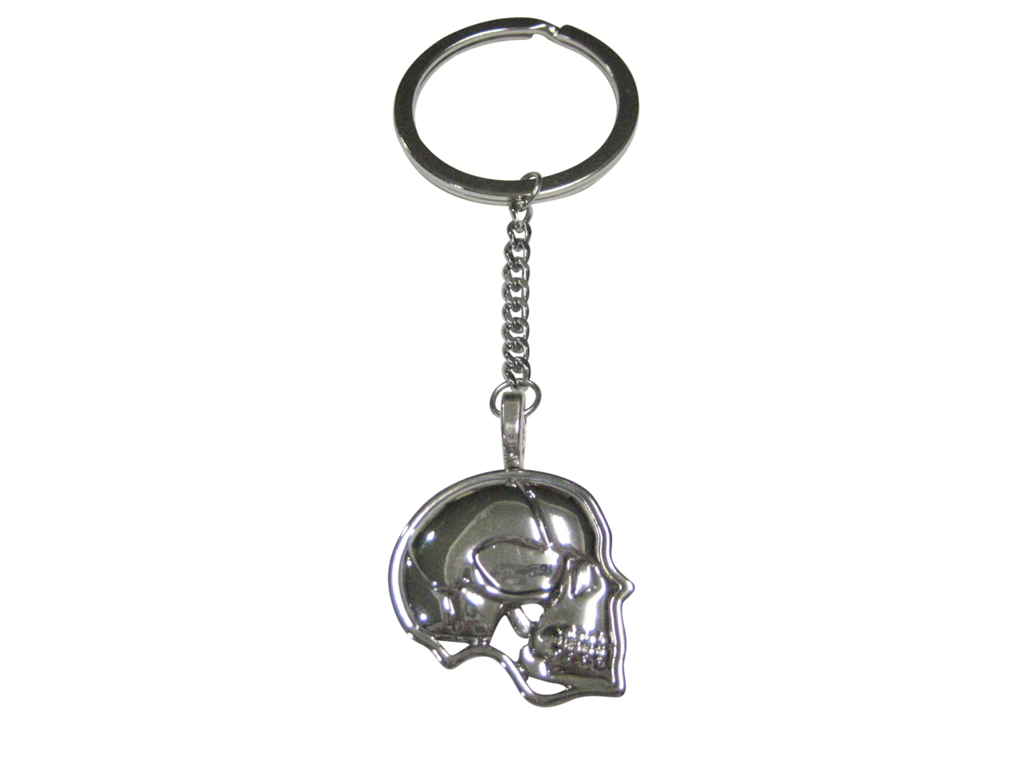 Silver Toned Large Anatomy Skull Pendant Keychain