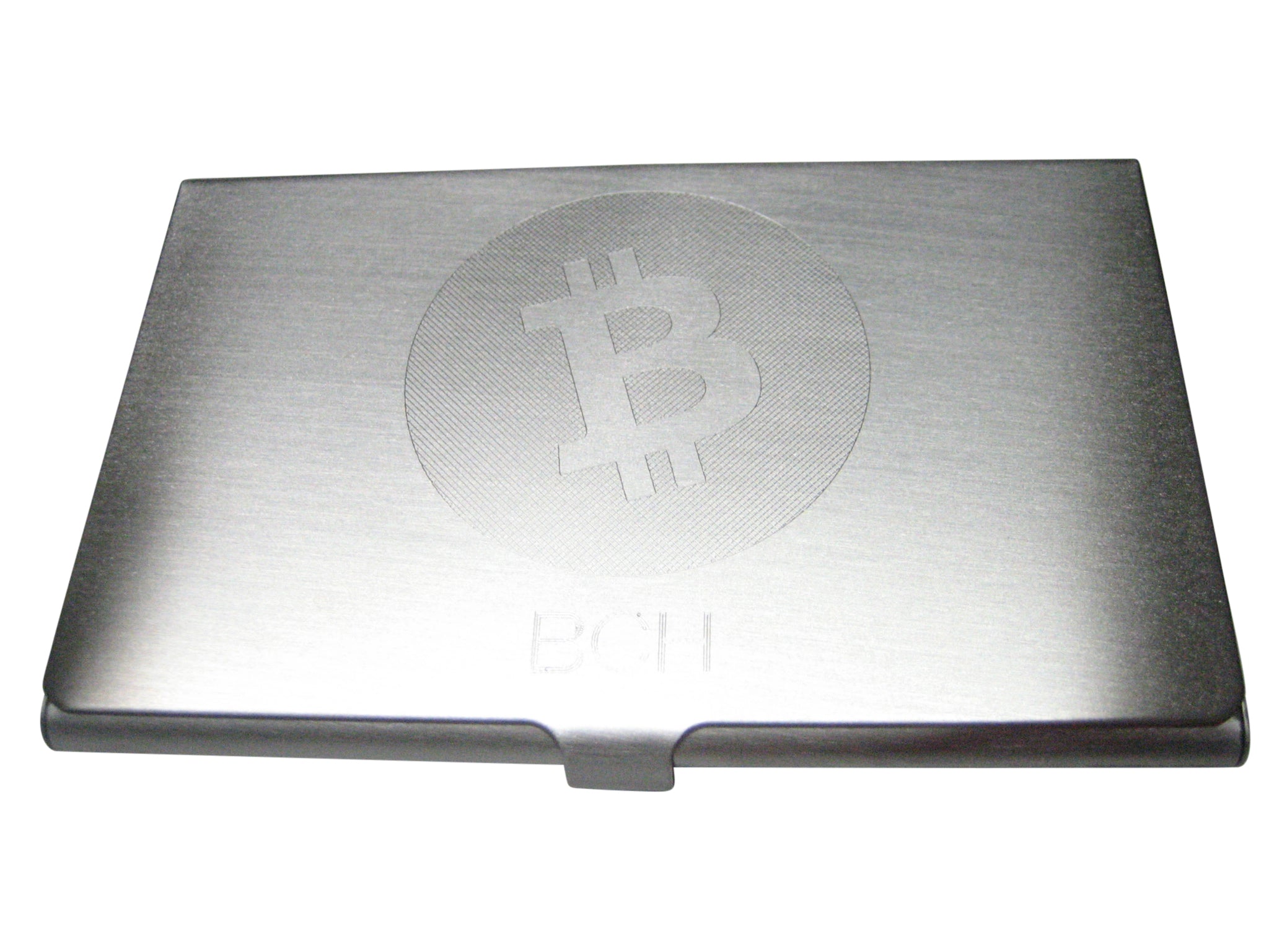 Silver Toned Large Etched Sleek Bitcoin Cash Coin Cryptocurrency Blockchain Business Card Holder