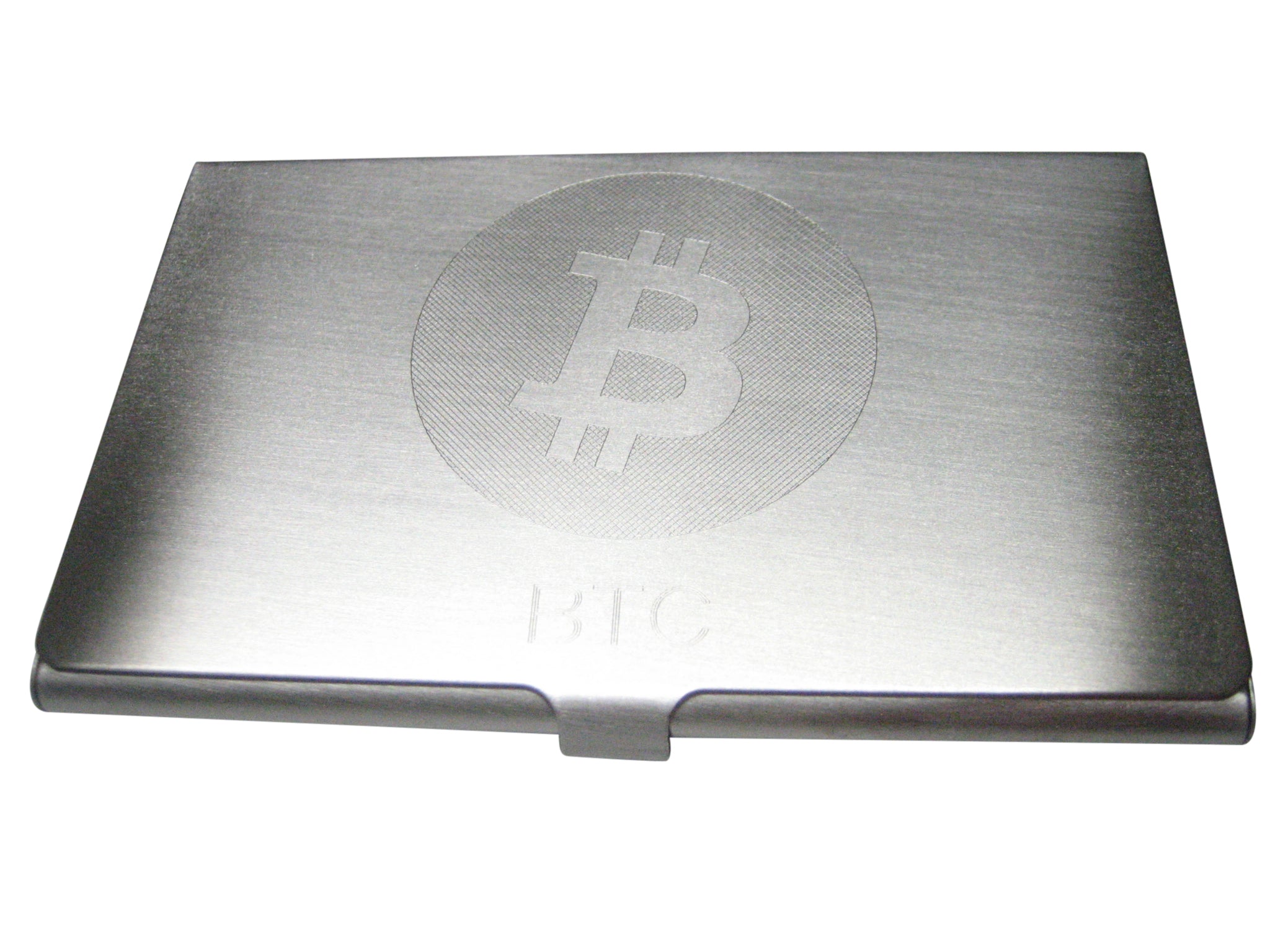 Silver Toned Large Etched Sleek Bitcoin Coin Cryptocurrency Blockchain Business Card Holder