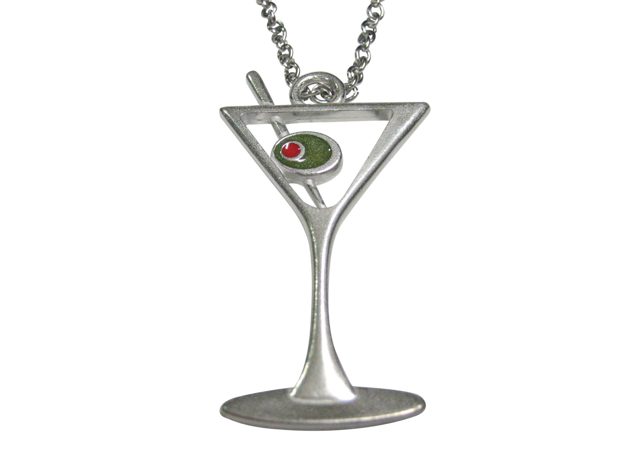 Silver Toned Large Martini Cocktail Glass Pendant Necklace