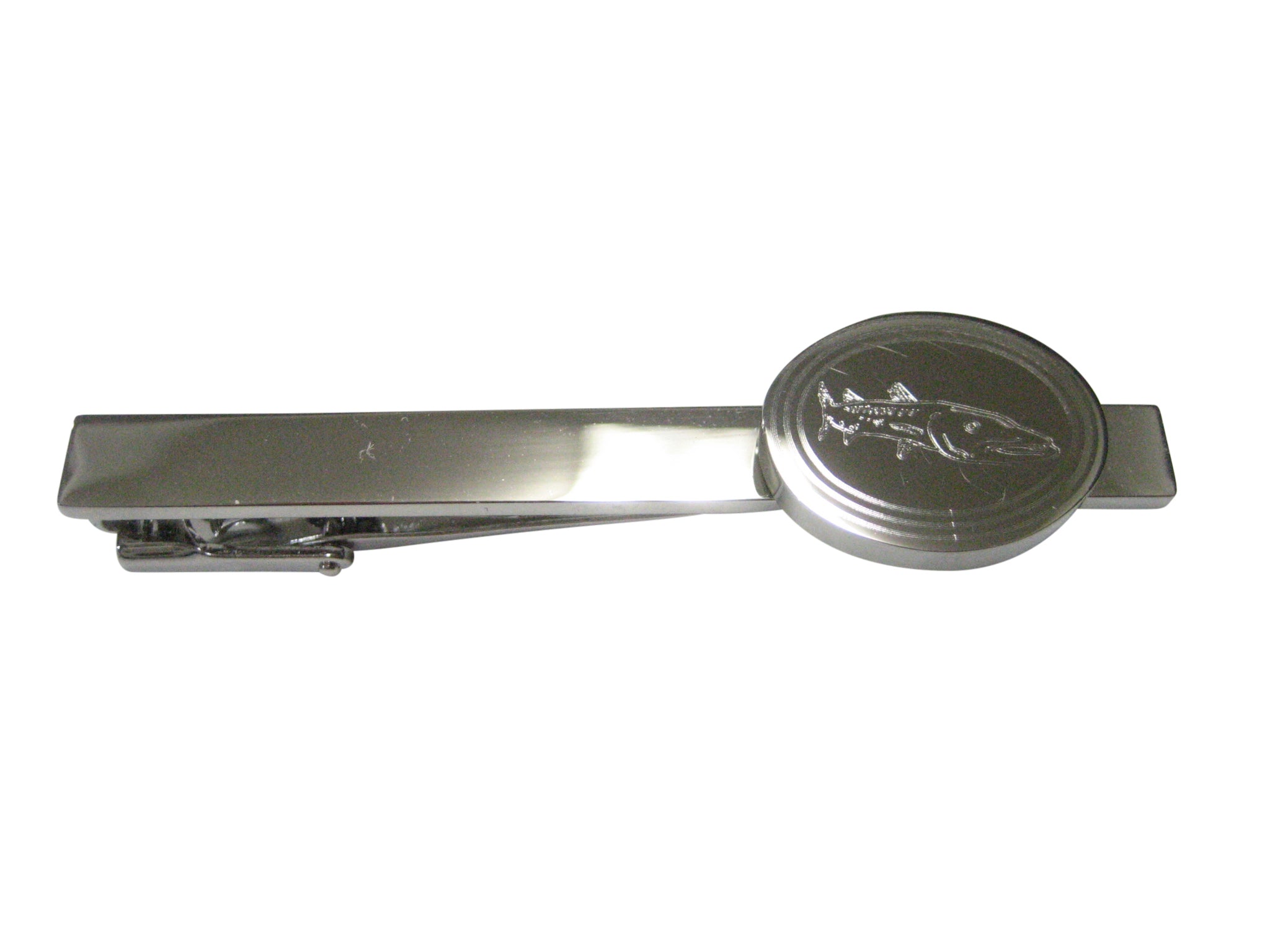 Silver Toned Oval Etched Barracuda Fish Tie Clip