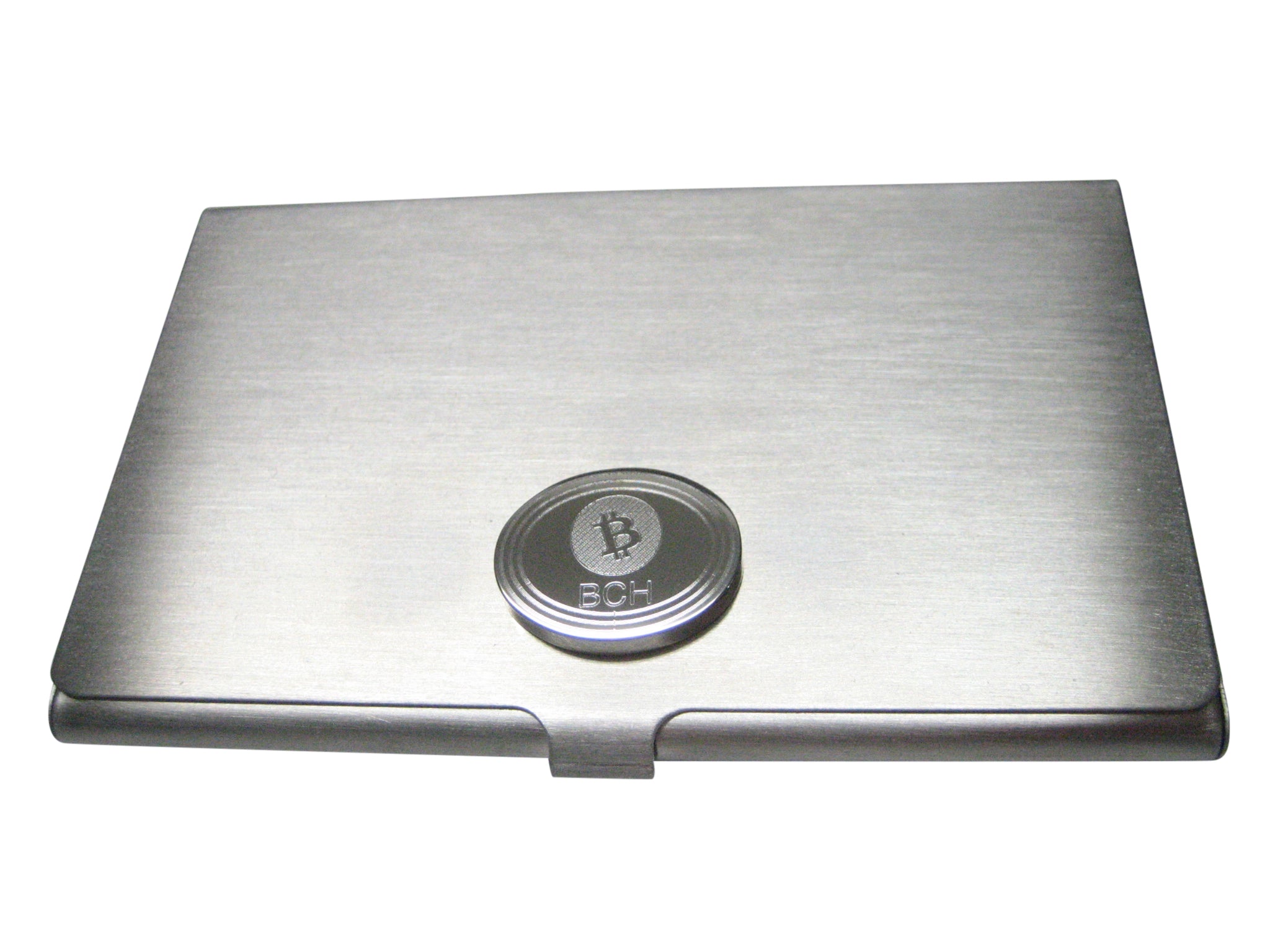Silver Toned Oval Etched Bitcoin Cash BCH Cryptocurrency Blockchain Business Card Holder