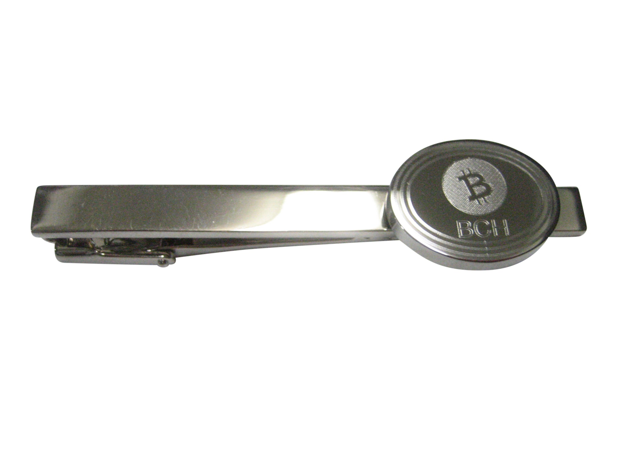 Silver Toned Oval Etched Bitcoin Cash BCH Cryptocurrency Blockchain Tie Clip