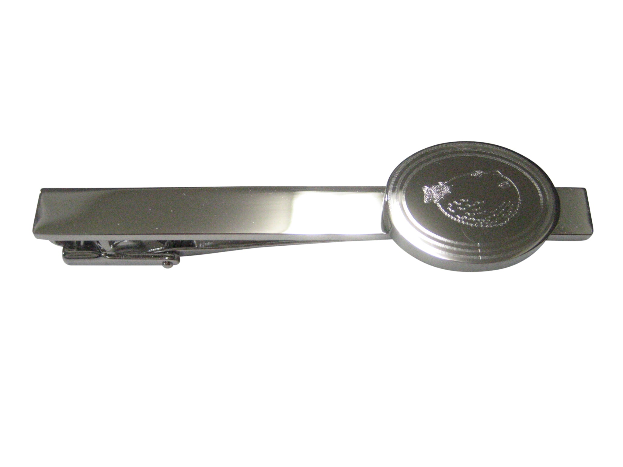 Silver Toned Oval Etched Blowfish Fugu Puffer Fish Tie Clip