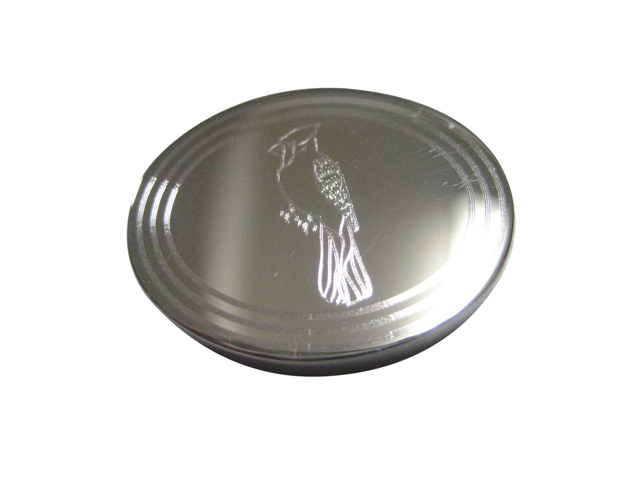 Silver Toned Oval Etched Blue Jay Bird Magnet
