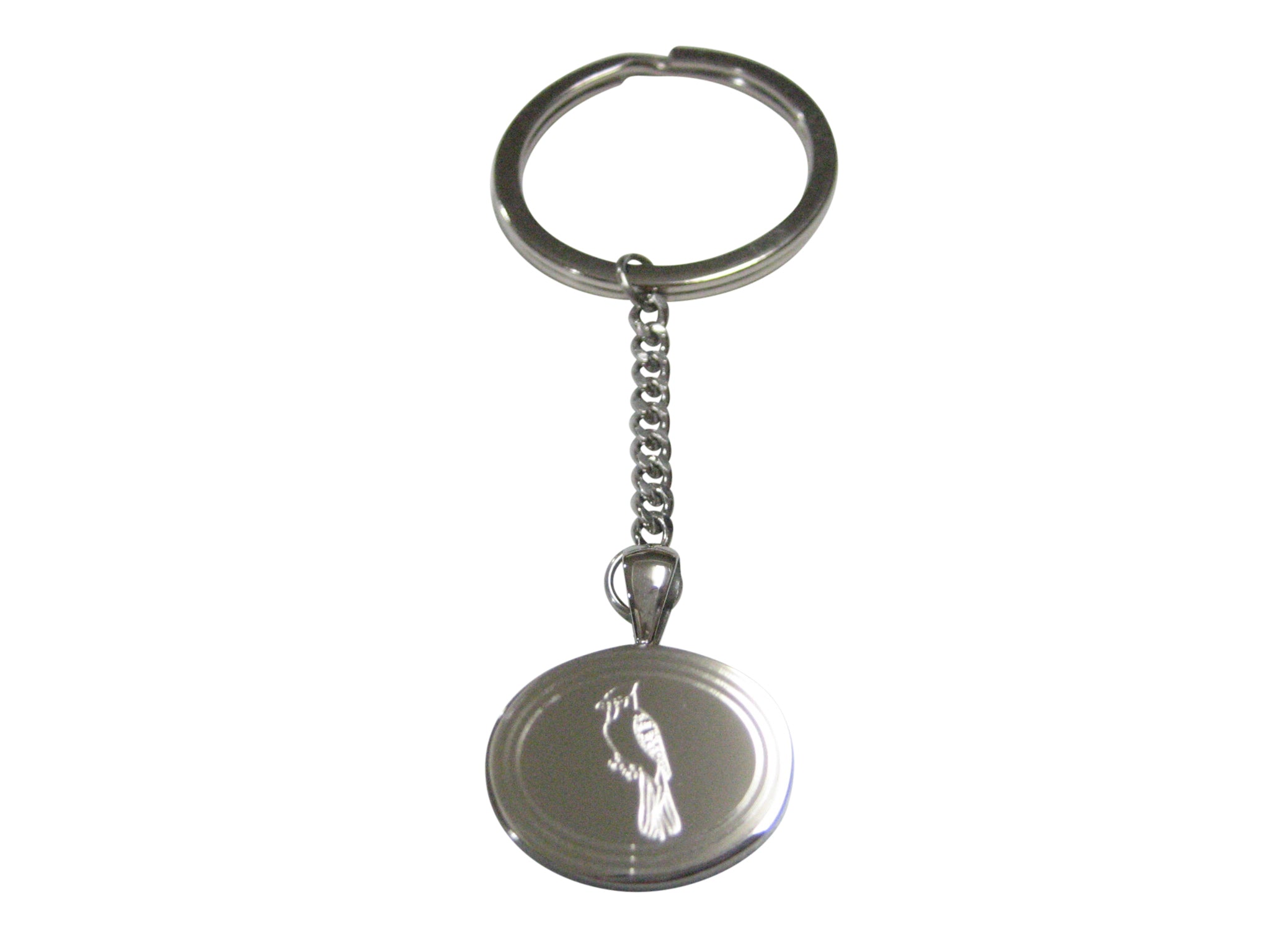 Silver Toned Oval Etched Blue Jay Bird Pendant Keychain