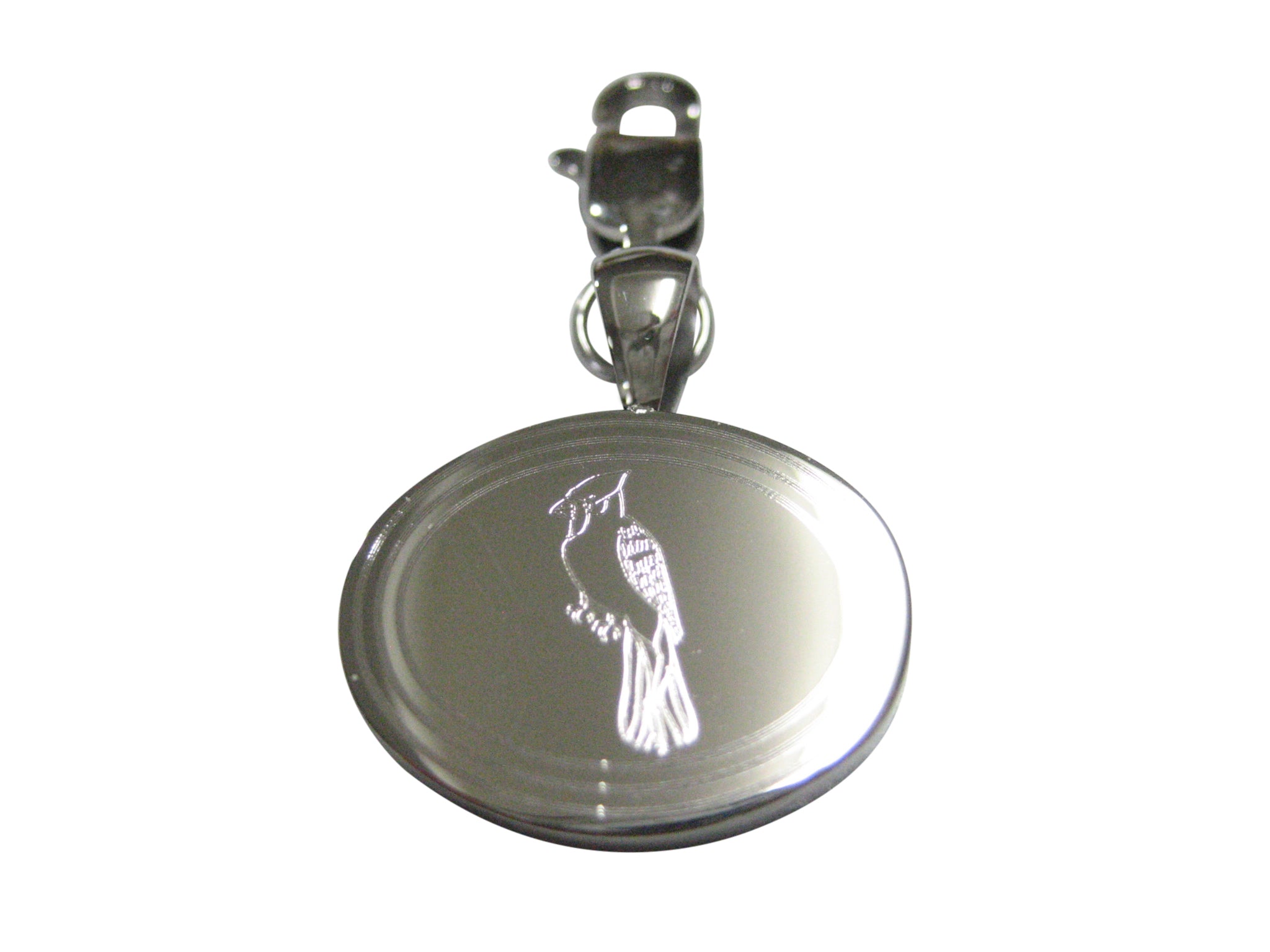 Silver Toned Oval Etched Blue Jay Bird Pendant Zipper Pull Charm