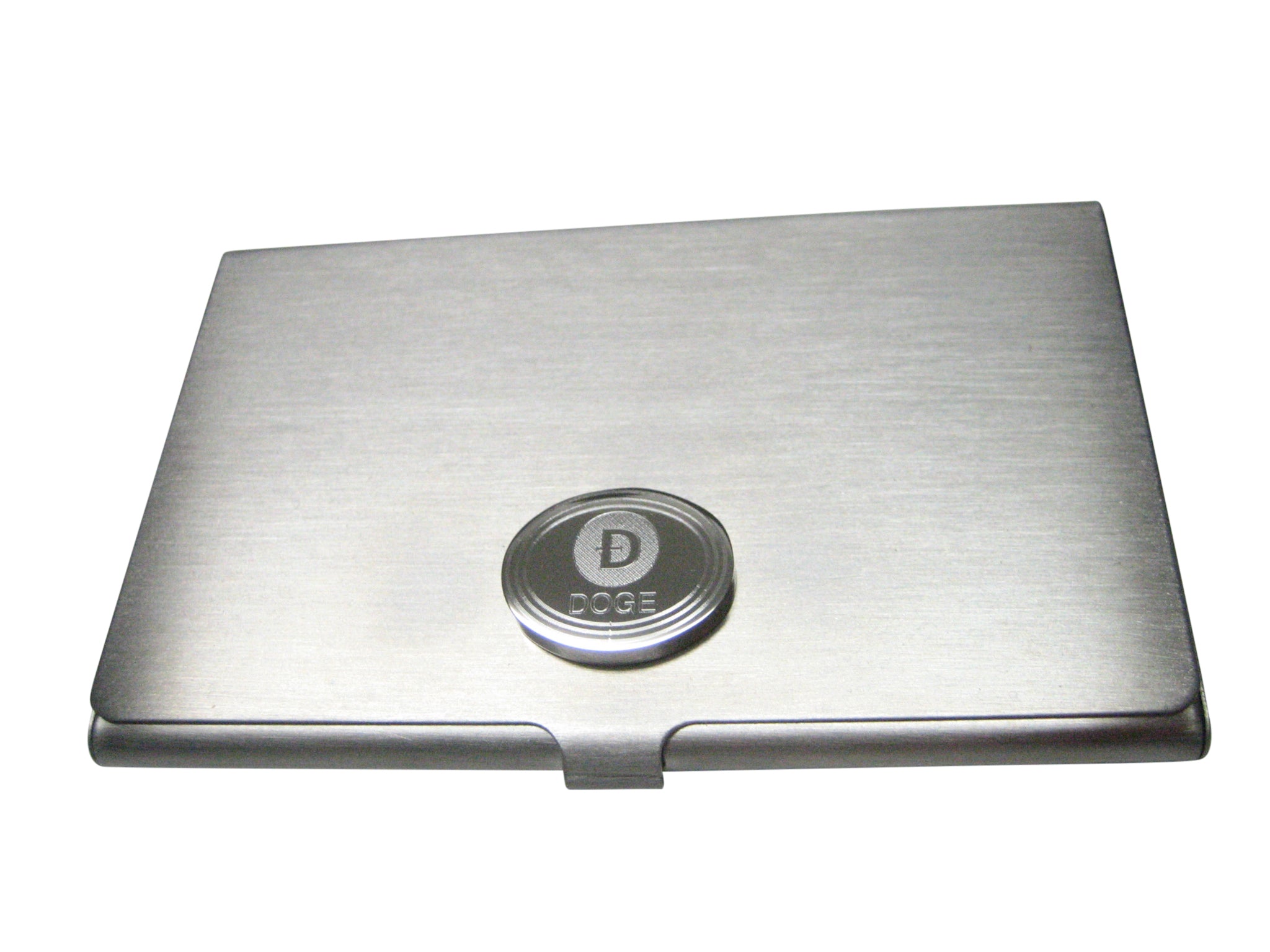 Silver Toned Oval Etched Doge Coin Cryptocurrency Blockchain Business Card Holder