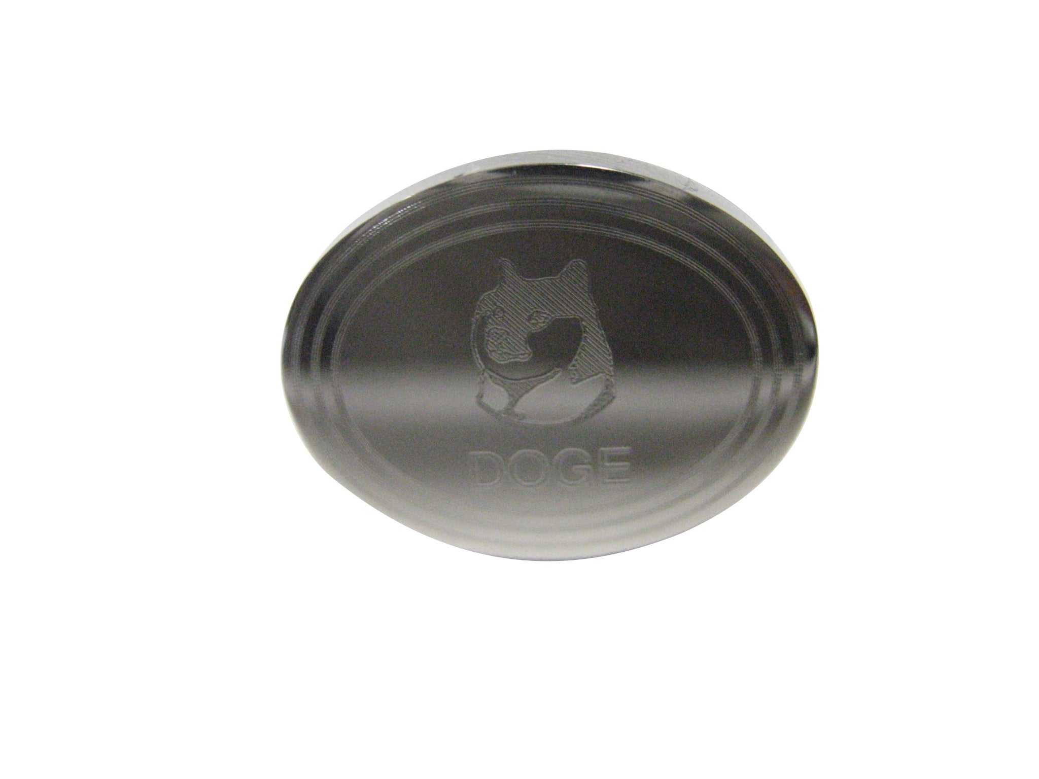 Silver Toned Oval Etched Doge Coin Cryptocurrency Blockchain With Shiba Dog Adjustable Size Fashion Ring