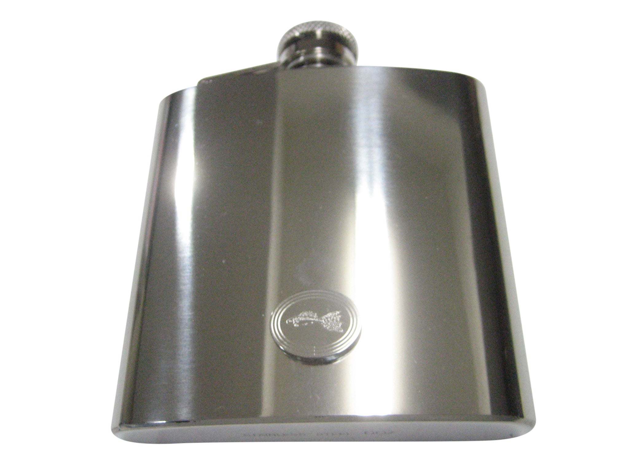 Silver Toned Oval Etched Guppy Fish 6oz Flask